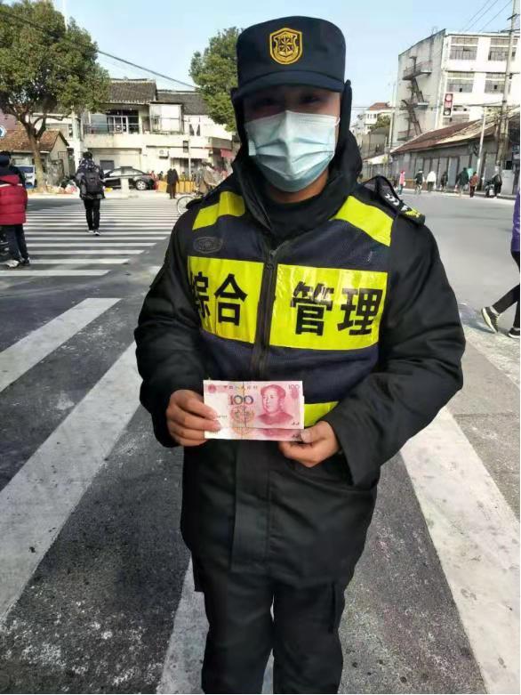 12月17日,宗保公司駐三林市容項目隊員李軍撿到現金上交民警。