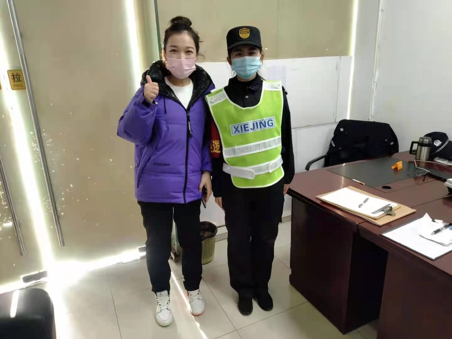 12月11日,宗保公司駐虹橋龍柏派出所交管項目隊員郭威撿到手提包歸還失主。