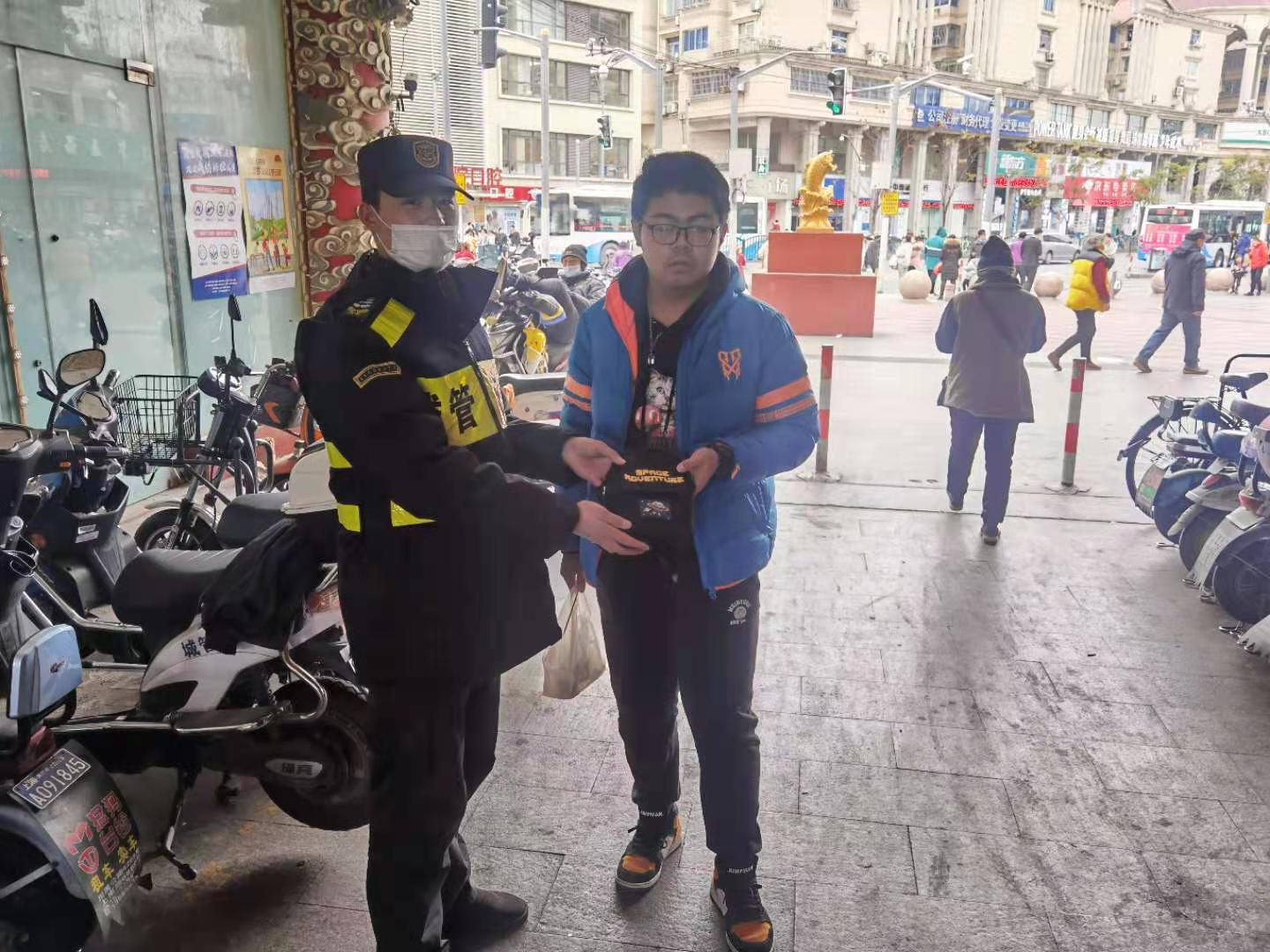 約過(guò)了20分鐘,一位女子根據之前的來(lái)電信息,急匆匆地跑過(guò)來(lái)認領(lǐng)。派出所交管輔警經(jīng)過(guò)仔細核實(shí),確認手提包是該女子所丟后,當場(chǎng)歸還失主。失主拿著(zhù)失而復得的手包,激動(dòng)不已,不停地向郭威表示感謝。