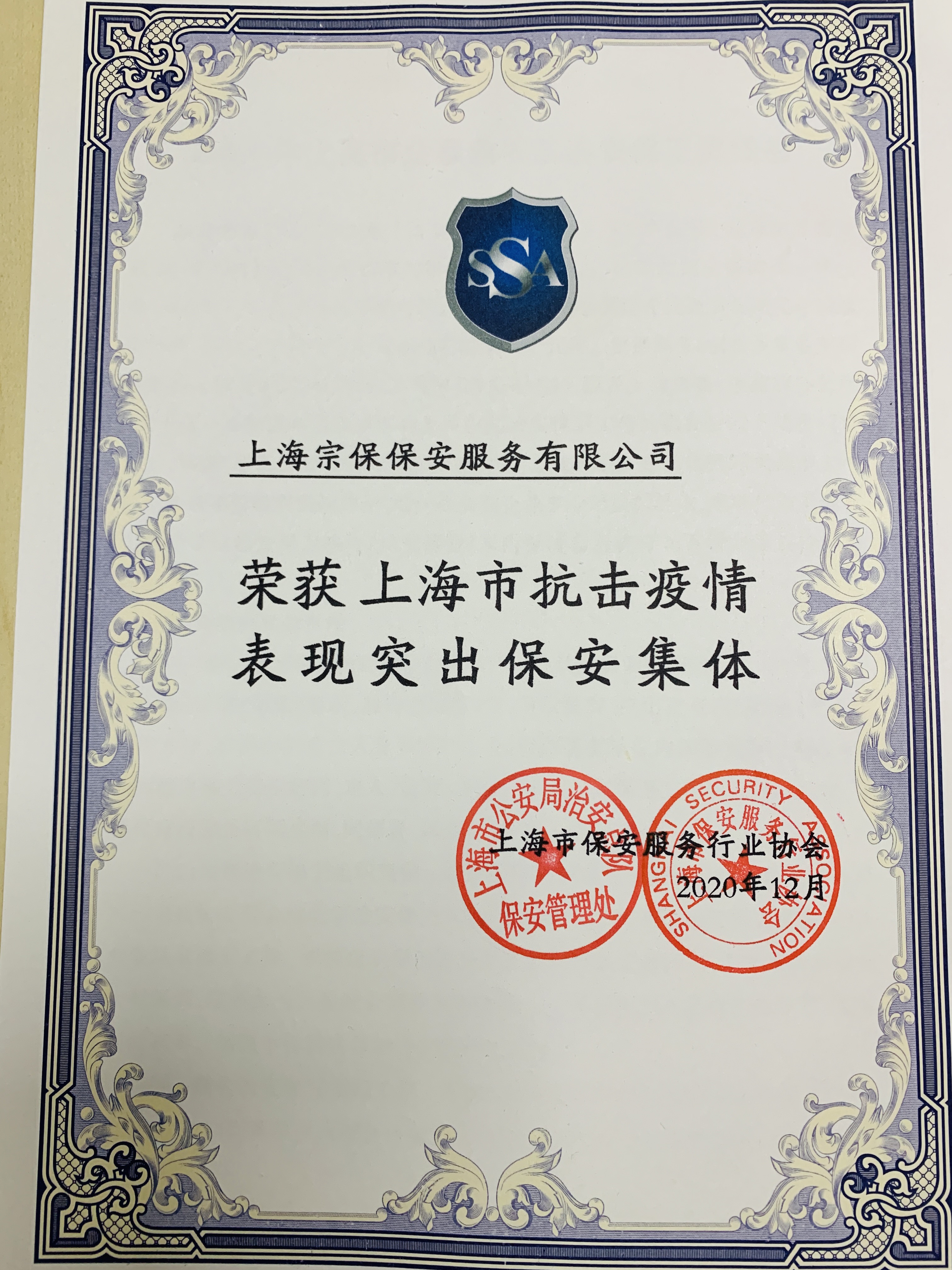 公司被評為“上海市抗擊疫情表現突出保安集體”。