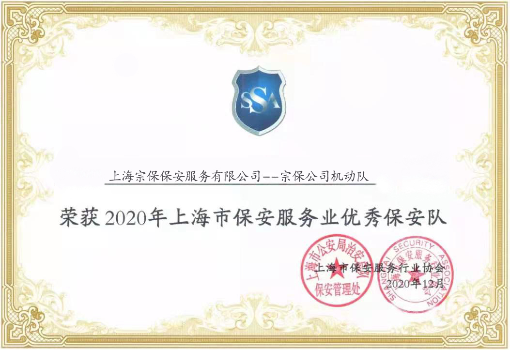 公司機動(dòng)隊被評為“2020年度上海市保安行業(yè)優(yōu)秀保安隊”。