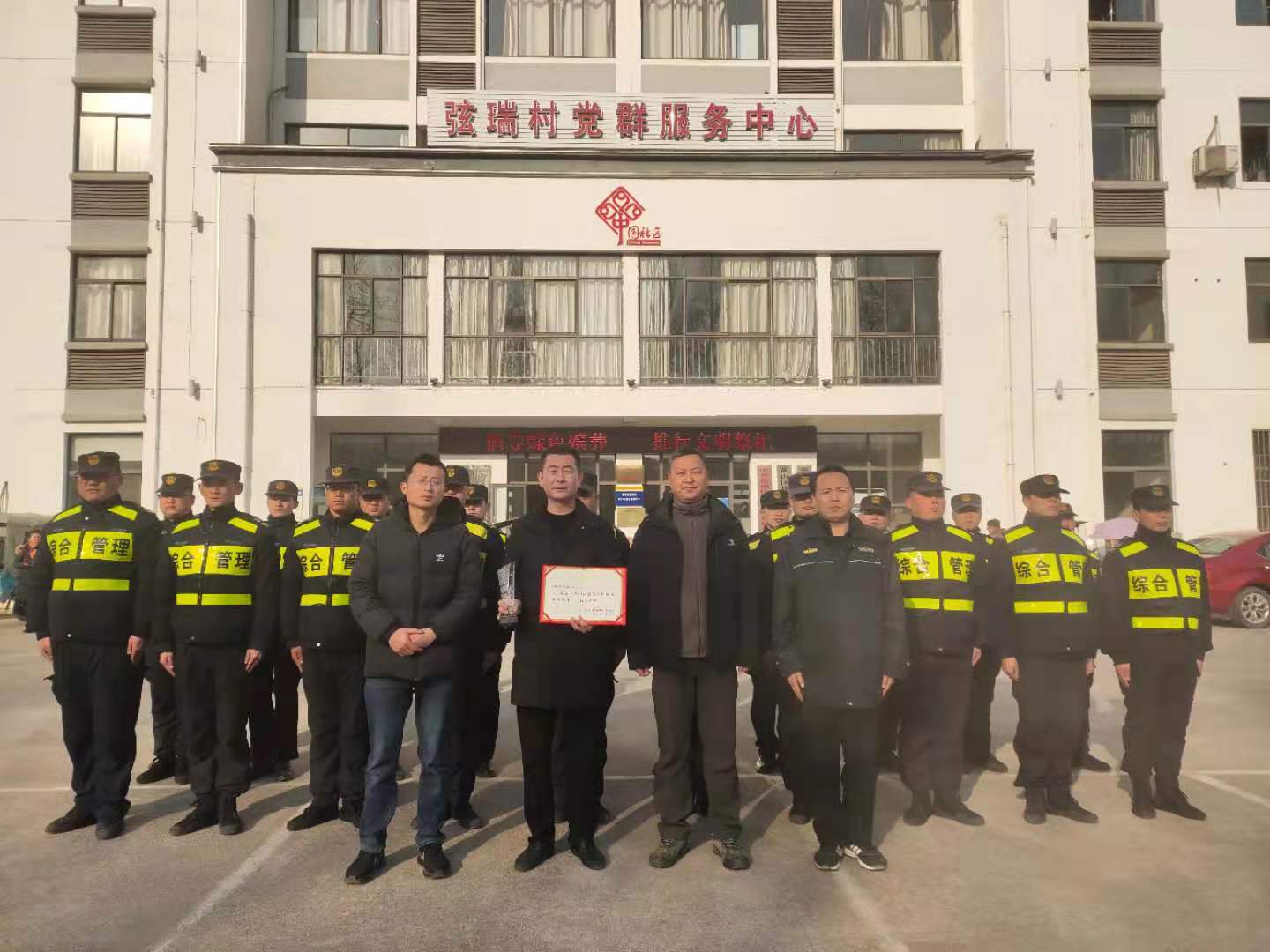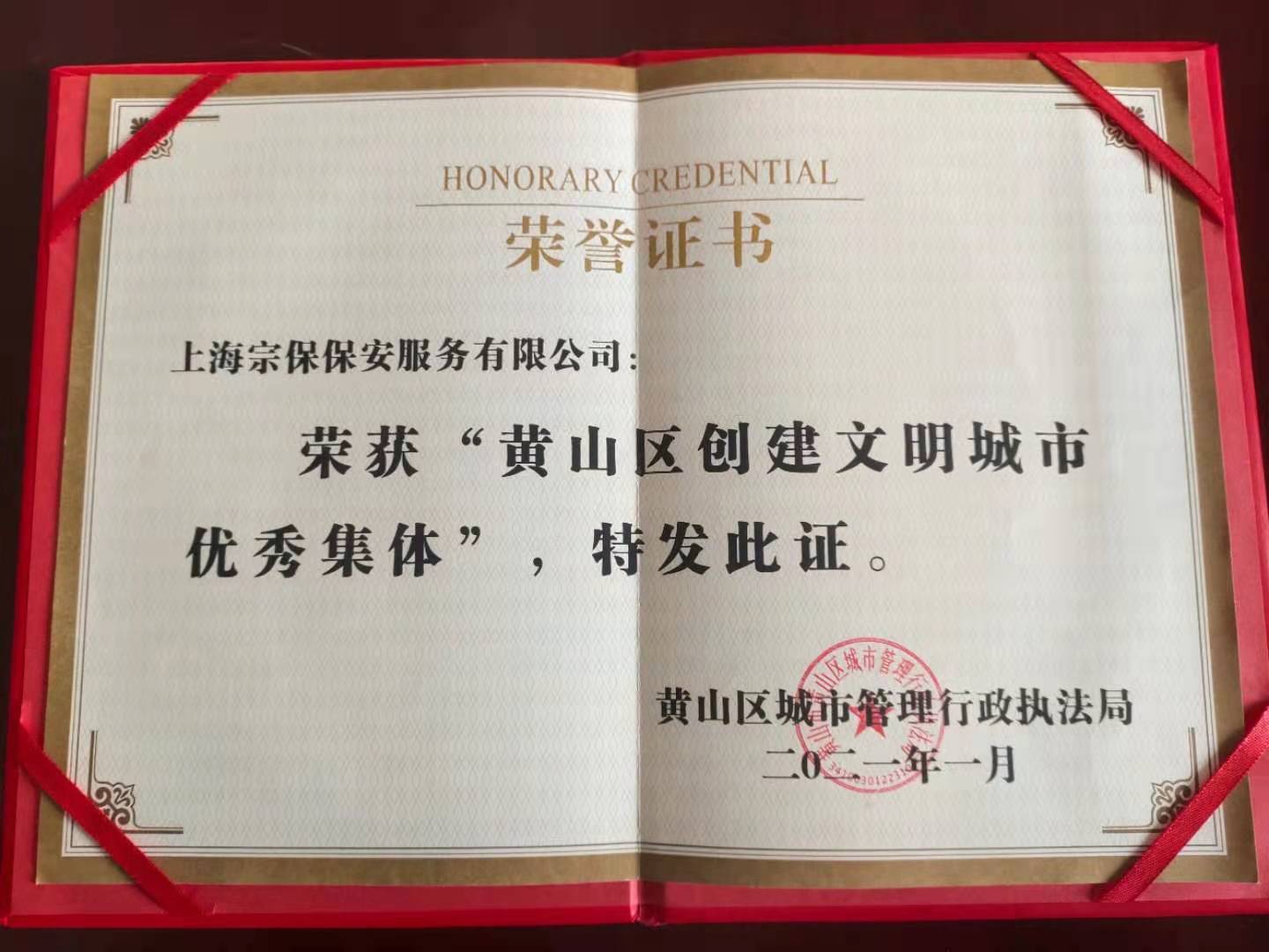 1月11日,黃山區城市管理行政執法局局長(cháng)汪雷春來(lái)到項目基地,為獲評為“黃山區創(chuàng )建文明城市優(yōu)秀集體”的上海宗保保安服務(wù)有限公司送來(lái)獎杯和榮譽(yù)證書(shū)。