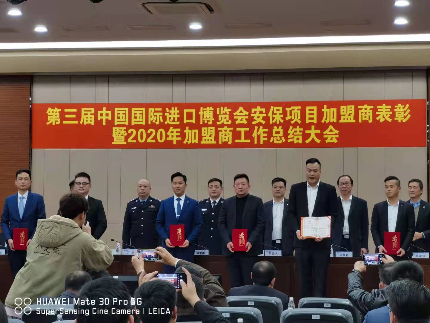 1月19日,第三屆中國國際進(jìn)口博覽會(huì )安保項目加盟商表彰大會(huì )在上海市保安服務(wù)(集團)有限公司舉行,上海宗保保安服務(wù)有限公司派員參加了會(huì )議。
