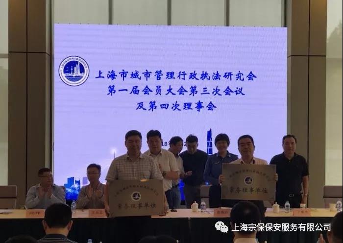 2018年5月28日,上海市城市管理行政執法研究會(huì )第一屆第三次會(huì )員大會(huì )及第一屆理事會(huì )第四次會(huì )議,在上海市靜安區大寧郁金香公園會(huì )議中心舉行。我司馮中保董事長(cháng)當選為研究會(huì )理事,上海宗保保安服務(wù)有限公司當選為理事單位。