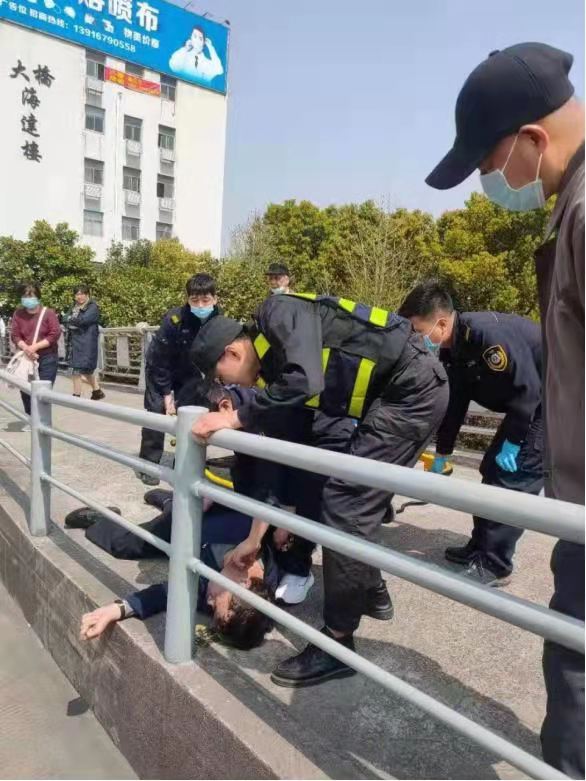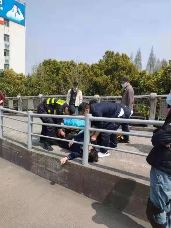 3月28日,李世耀和呂立志巡邏至上南路大橋時(shí),發(fā)現一名中年男子倒在地上,便立即上前查看。該男子毫無(wú)意識、處于昏迷狀態(tài)。情況緊急,李世耀立即撥打120急救電話(huà)和派出所內部電話(huà),并向組長(cháng)報告。同時(shí),呂立志則幫助男子保持呼吸暢通,不停地與他說(shuō)話(huà),試圖讓他清醒過(guò)來(lái)。