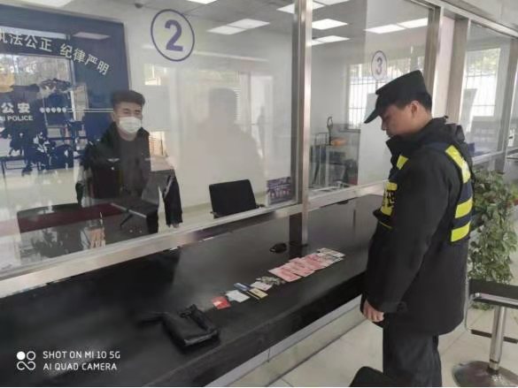 隨后,杜祖峰隨組長(cháng)將錢(qián)包送到派出所,在民警的監督下清點(diǎn)物品,內有現金841元、身份證、銀行卡、社??ǖ茸C件,兩人將錢(qián)包上交民警后,便悄然離開(kāi)。