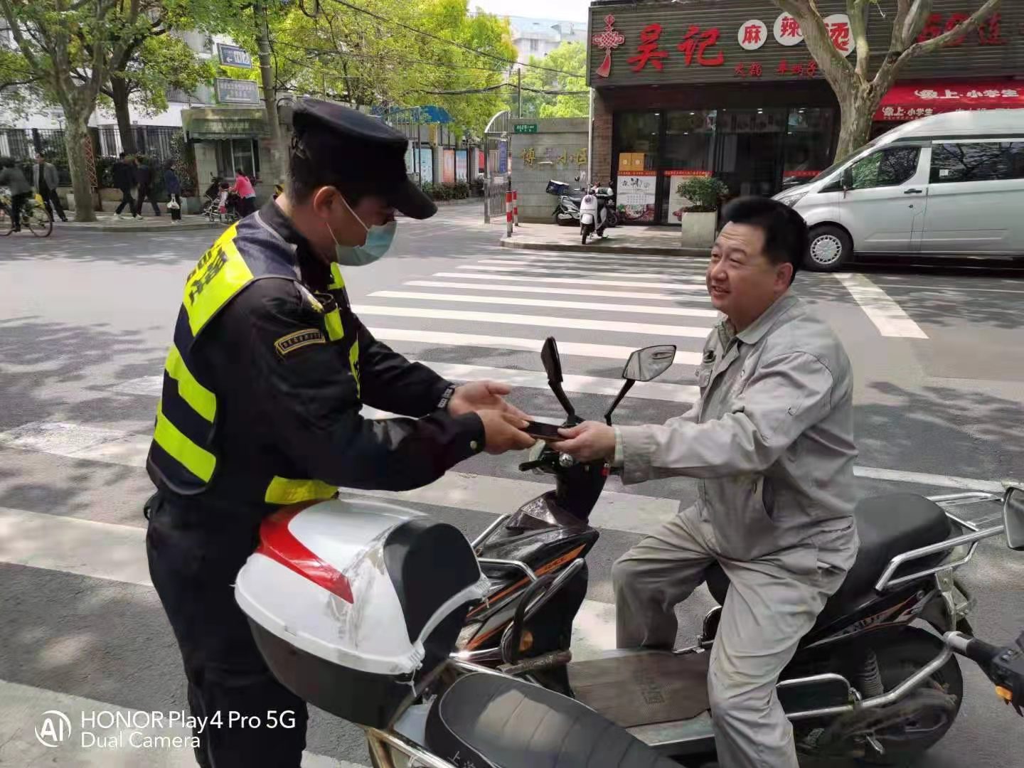 當日,王續光在高行鎮高南衛生院大門(mén)口測溫值勤時(shí),在門(mén)口花壇邊撿到一部手機,便上報給隊長(cháng)。因考慮到手機可能是打疫苗的居民遺失的,隊長(cháng)就讓他在原地等待。大約半個(gè)小時(shí)后,有個(gè)中年男子前來(lái)尋找,經(jīng)過(guò)密碼驗證解鎖手機后,王續光便將手機歸還給他。