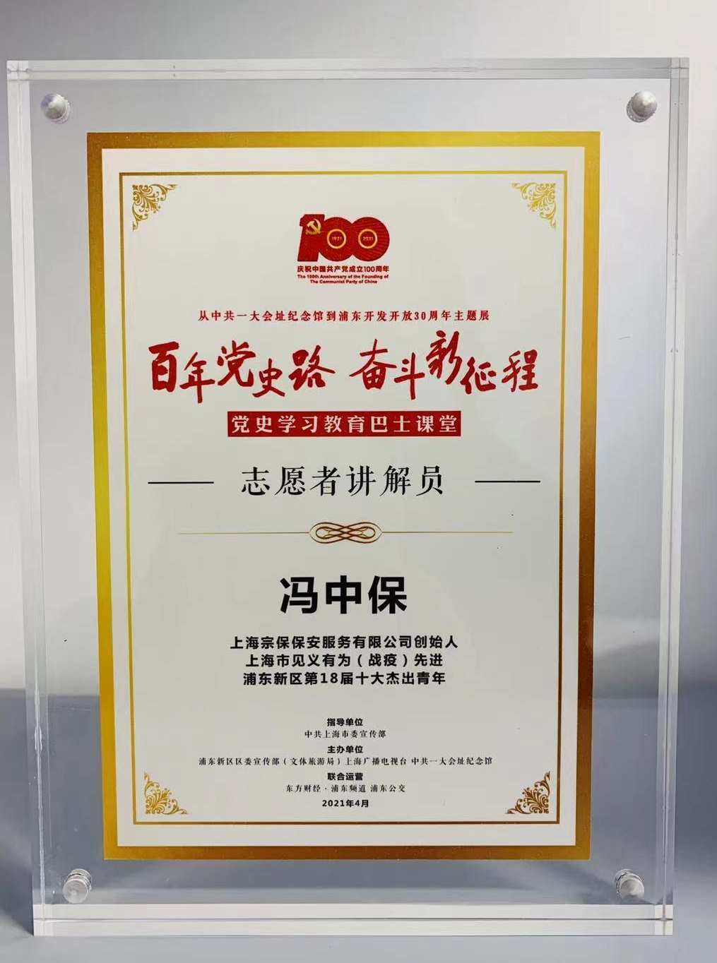在發(fā)車(chē)儀式上,宗保公司創(chuàng )始人馮中保獲頒黨史巴士志愿講解員證書(shū)。