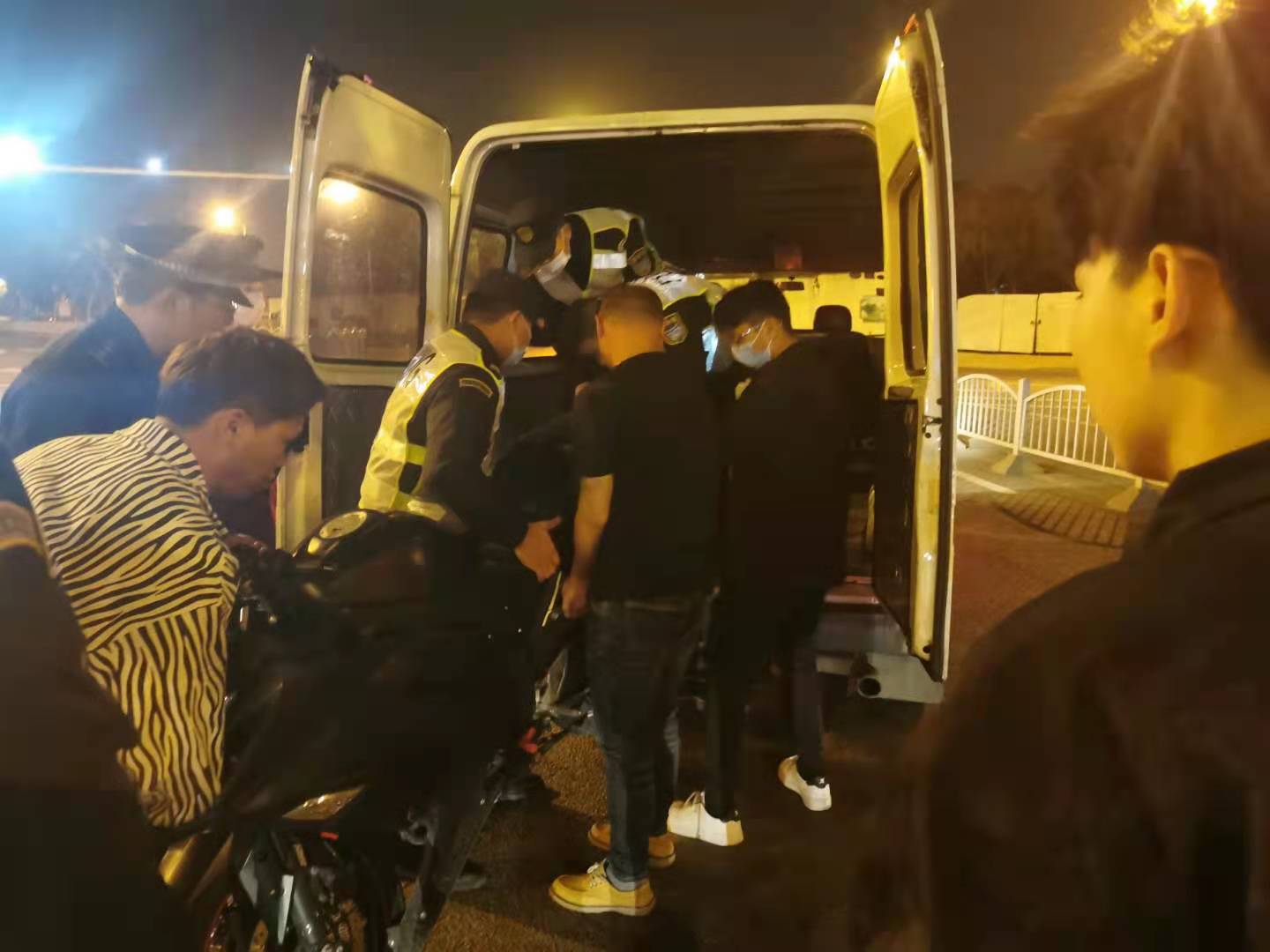 當天23:30,駐金橋派出所夜班巡邏隊員張港、賴(lài)作利巡邏至錦繡東路近金橋路時(shí),發(fā)現前方路口發(fā)生交通事故,便立即上前查看,一摩托車(chē)駕駛員由于拐彎速度過(guò)快與對向正在行駛的一輛轎車(chē)相撞。