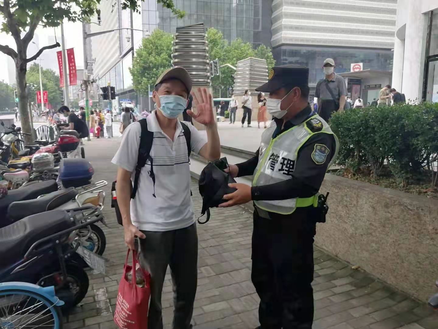 當天8:15,漆貴成在商城路地鐵3號口附近整理共享單車(chē)時(shí),發(fā)現一個(gè)挎包被人遺忘在車(chē)筐里,便立即上報班組長(cháng)并按指示在原地等待失主。
