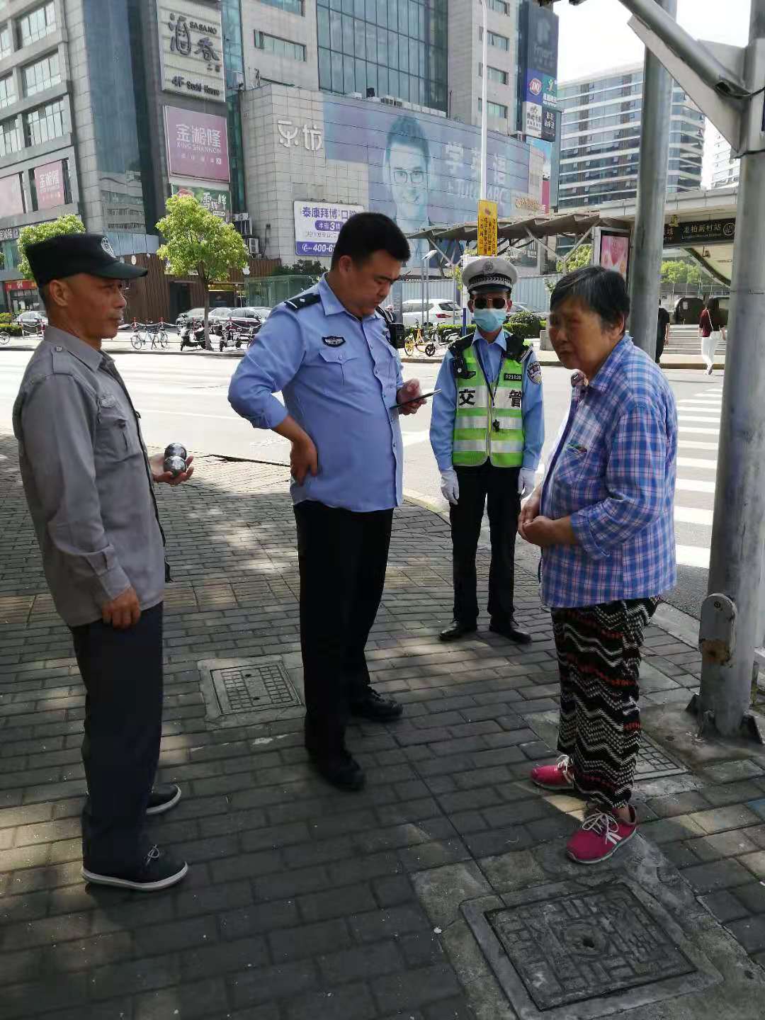 楊雷一邊安撫阿姨,一邊向虹橋派出所指揮室民警報告情況。很快,民警趕到現場(chǎng),通過(guò)人臉識別查找到阿姨的家庭住址,并開(kāi)車(chē)將老人送回家。臨走前,老人再三向楊雷表示感謝!