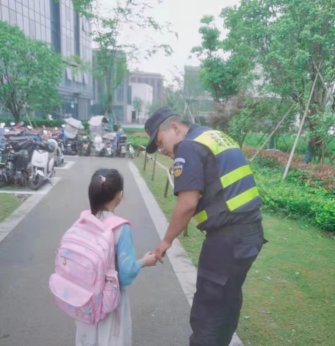 余志凱將情況上報項目隊長(cháng)付牛,付牛隨即報警并向所屬城管中隊報告。隨后,余志凱按指示帶小女孩前往學(xué)校,找到學(xué)校校長(cháng)說(shuō)明情況,校長(cháng)及時(shí)聯(lián)系小女孩家長(cháng),由校長(cháng)幫助將小女孩帶回。
