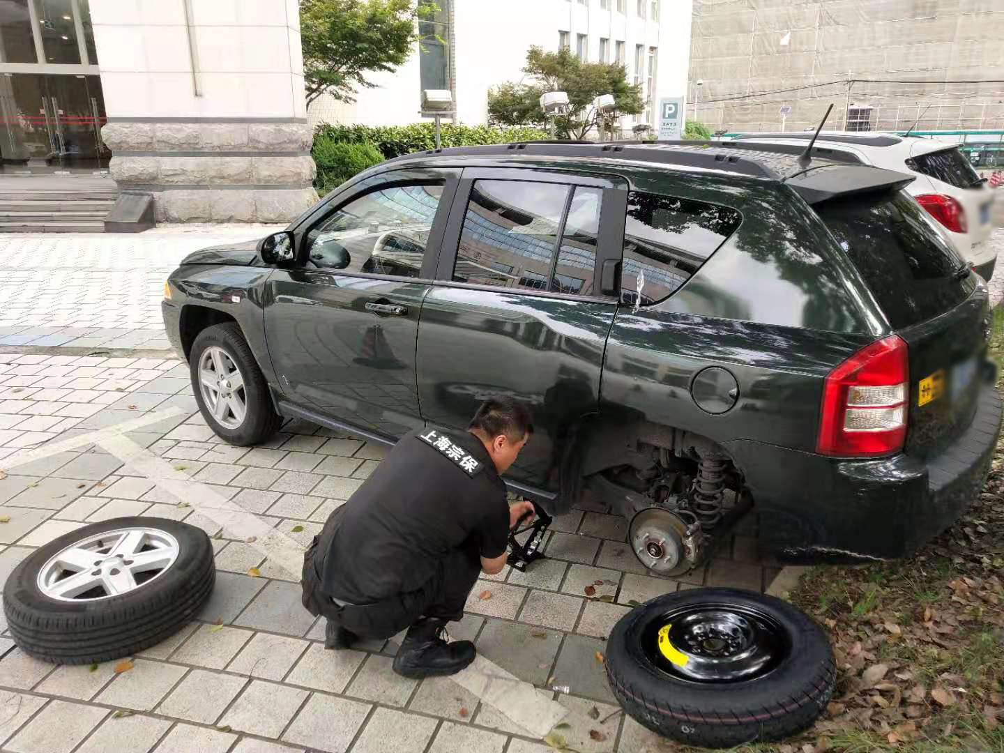 輪胎扎釘無(wú)法行 隊員換胎解難題—市委黨校項目隊員幫助黨校學(xué)員更換車(chē)備胎