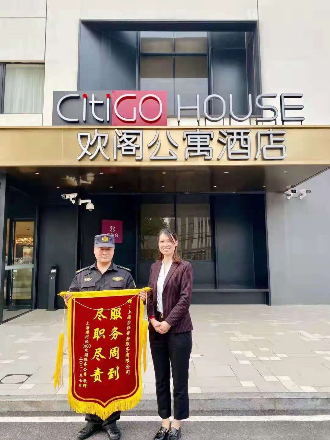 7月12日,宗保公司駐徐匯區歡閣公寓酒店項目收到酒店贈送的繡有“盡職盡責 服務(wù)周到”的錦旗,對宗保公司隊員們的工作給予充分肯定和感謝。