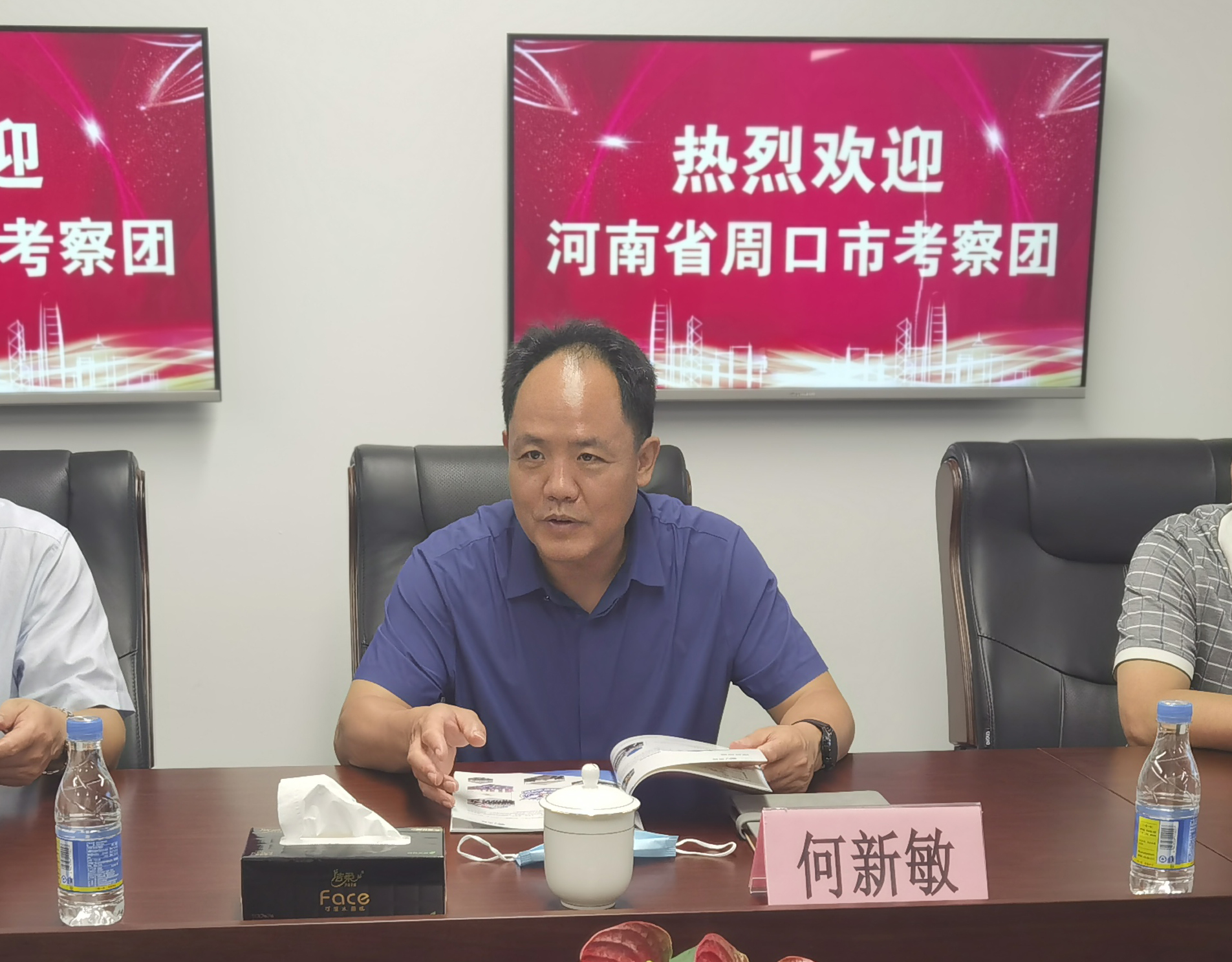 隨后,雙方進(jìn)行了座談交流。公司創(chuàng )始人馮中保代表公司對周口市考察團一行的到來(lái)表示熱烈歡迎,向來(lái)賓介紹了公司基本情況、公司發(fā)展歷程、公司未來(lái)展望,暢談了“宗管佳科技公司”開(kāi)展大眾健康服務(wù)的設想。