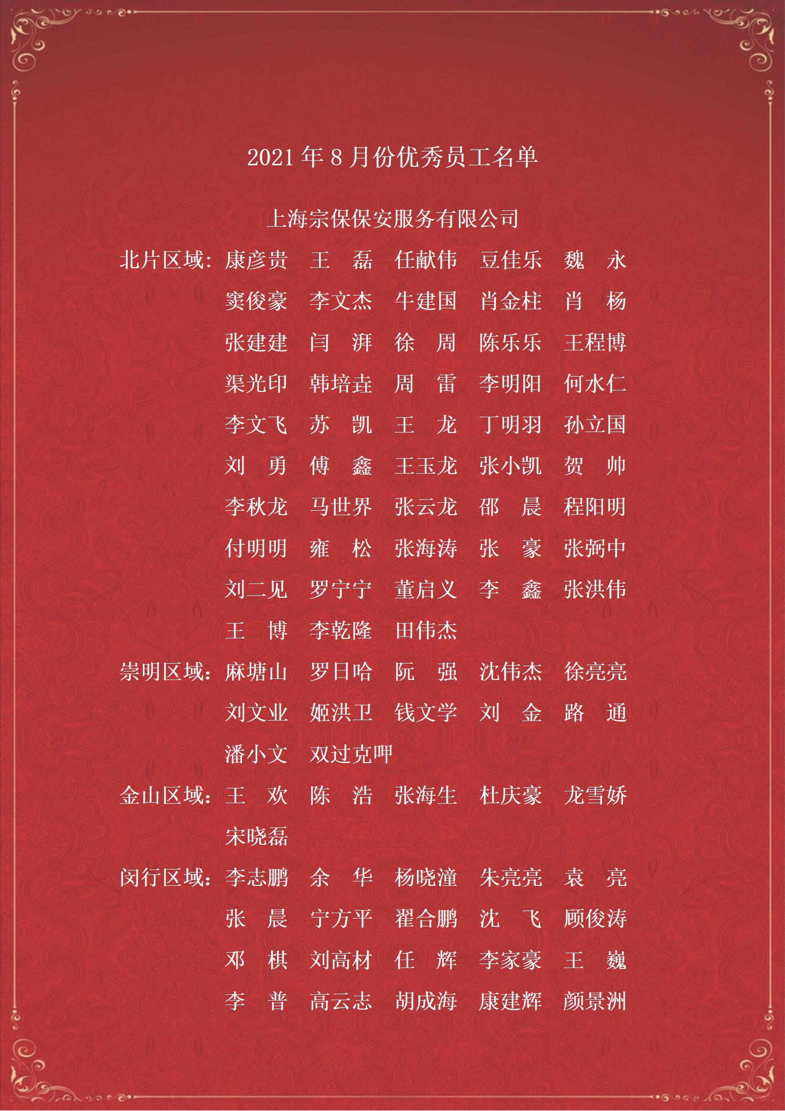八月份,廣大員工發(fā)揚“特別能吃苦,特別能戰斗”的宗保人精神,戰高溫、斗酷暑,落實(shí)工作要求,嚴格工作紀律,較好地完成了各項工作任務(wù)。期間,涌現出了一批表現突出的員工。為表彰先進(jìn),樹(shù)立典型,激勵后進(jìn),在各項目推薦,各部門(mén)審定把關(guān)的基礎上,經(jīng)公司董事會(huì )研究,決定對8月份工作表現優(yōu)異的康彥貴等243名優(yōu)秀員工,予以通報表彰獎勵(獎金已隨八月份工資發(fā)放)。
