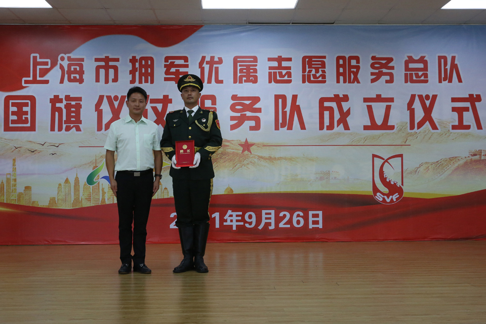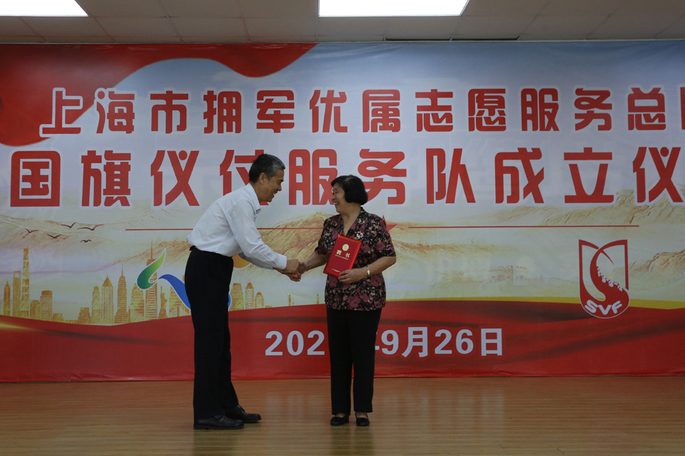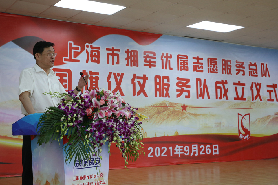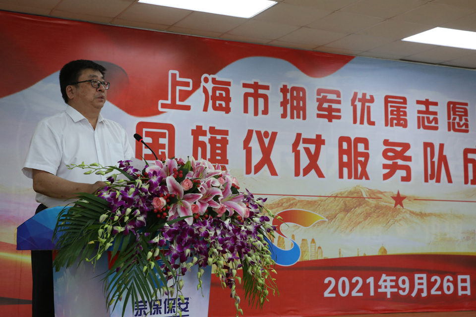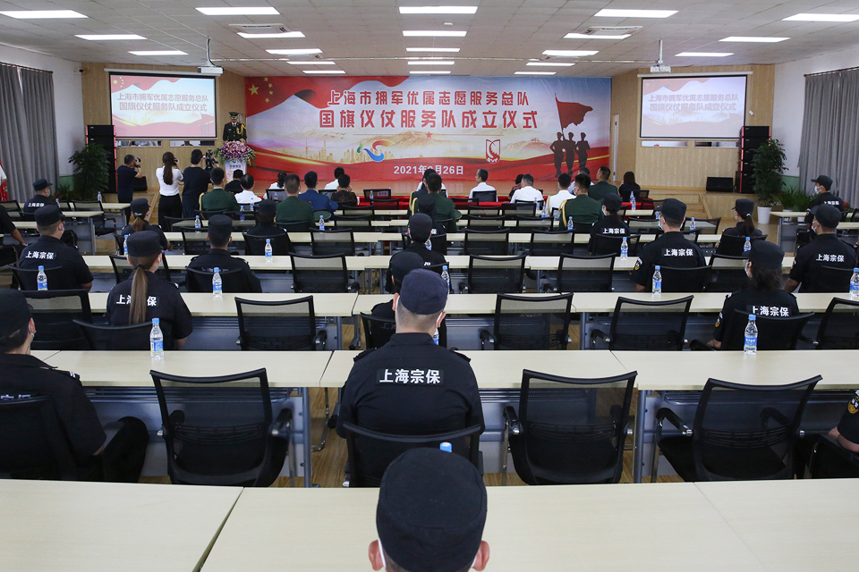 9月26日,上海市擁軍優(yōu)屬志愿服務(wù)總隊在宗保公司大禮堂舉行國旗儀仗服務(wù)隊成立授旗儀式。