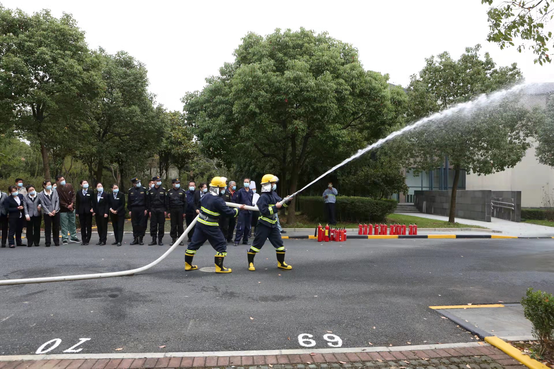 13:30,消防演練正式開(kāi)始,項目組長(cháng)許志剛向大家介紹不同類(lèi)型消防器材的功能作用,講授一旦發(fā)生火情,如何正確地報警、疏散、自救和逃生的常識,詳細講解手提式干粉滅火器、二氧化碳滅火器和消防水帶的使用方法,現場(chǎng)演示如何正確使用滅火器材進(jìn)行滅火。