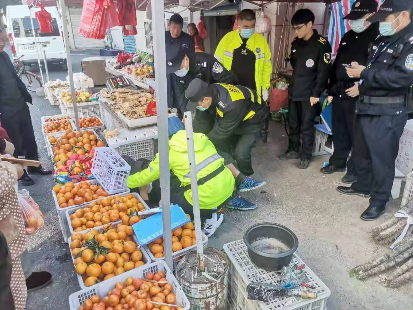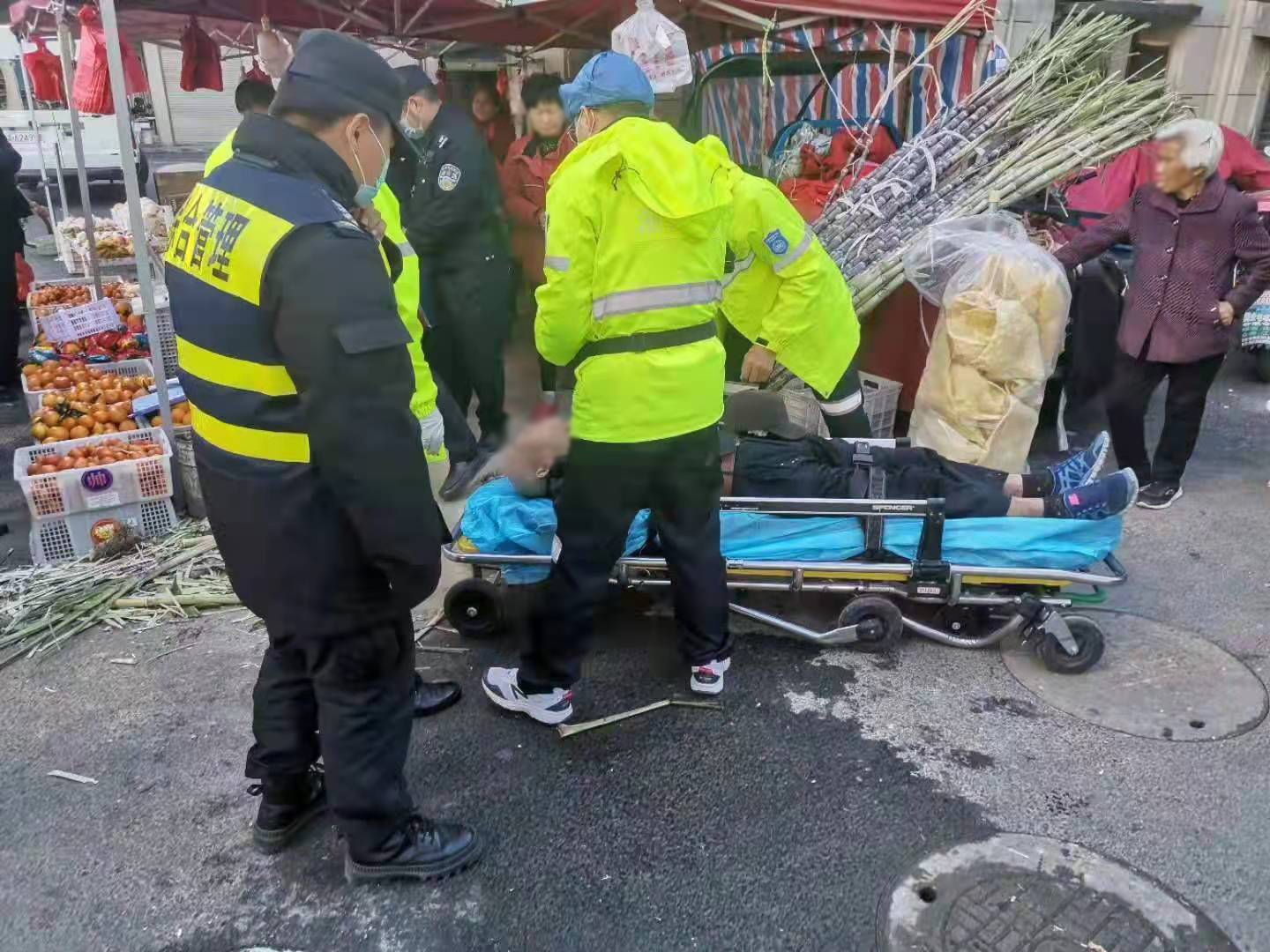 當日13:00左右,楊航在塘棲菜市場(chǎng)巡邏時(shí),發(fā)現菜場(chǎng)西門(mén)水果攤旁邊有一名男子躺在地上,便立即上前查看。男子面色蒼白,渾身顫抖,嘗試著(zhù)與他說(shuō)話(huà)時(shí),男子沒(méi)有回應。