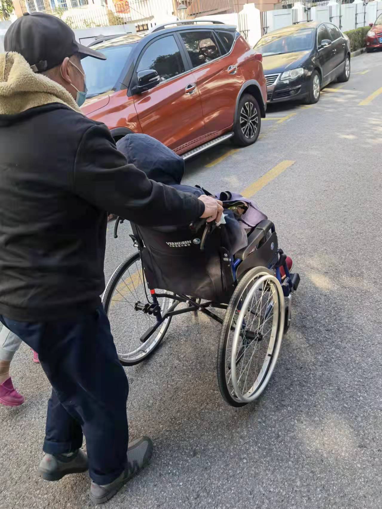 老人年紀大,又有一定的體重,為了避免發(fā)生意外,范大才背著(zhù)老人格外小心,不敢過(guò)于直起腰,生怕老人從背上滑下來(lái),所以小心翼翼地,一步一步慢慢地往下走。來(lái)到樓下,范大才輕輕地將老人放到輪椅上,并叮囑于阿姨抓緊時(shí)間帶老人去醫院就醫。