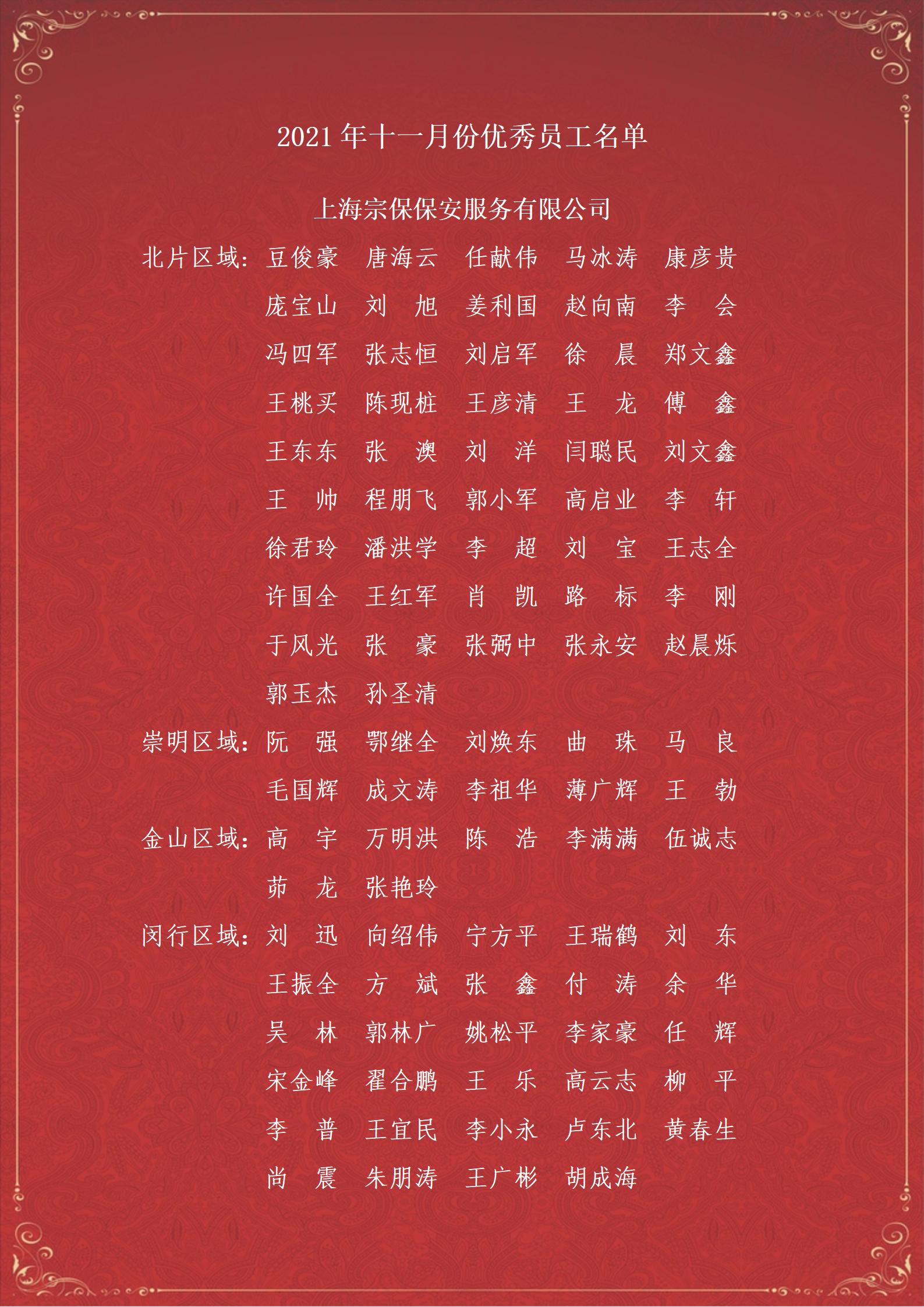 11月份,公司廣大員工根據甲方的工作部署,按照公司的工作要求,秉承不懼風(fēng)險、勇毅前行,連續奮戰、盡責履職的工作作風(fēng),積極配合進(jìn)行疫情防控,開(kāi)展消防活動(dòng)演練,服務(wù)保障換屆選舉,助力做好輔助執法,圓滿(mǎn)完成了甲方賦予的各項工作任務(wù),受到了甲方的充分肯定和激勵。期間,涌現出了一批像牛占杰同志那樣盡心履責、忍辱克制、拾金不昧、助人為樂(lè )的優(yōu)秀員工和先進(jìn)典型。