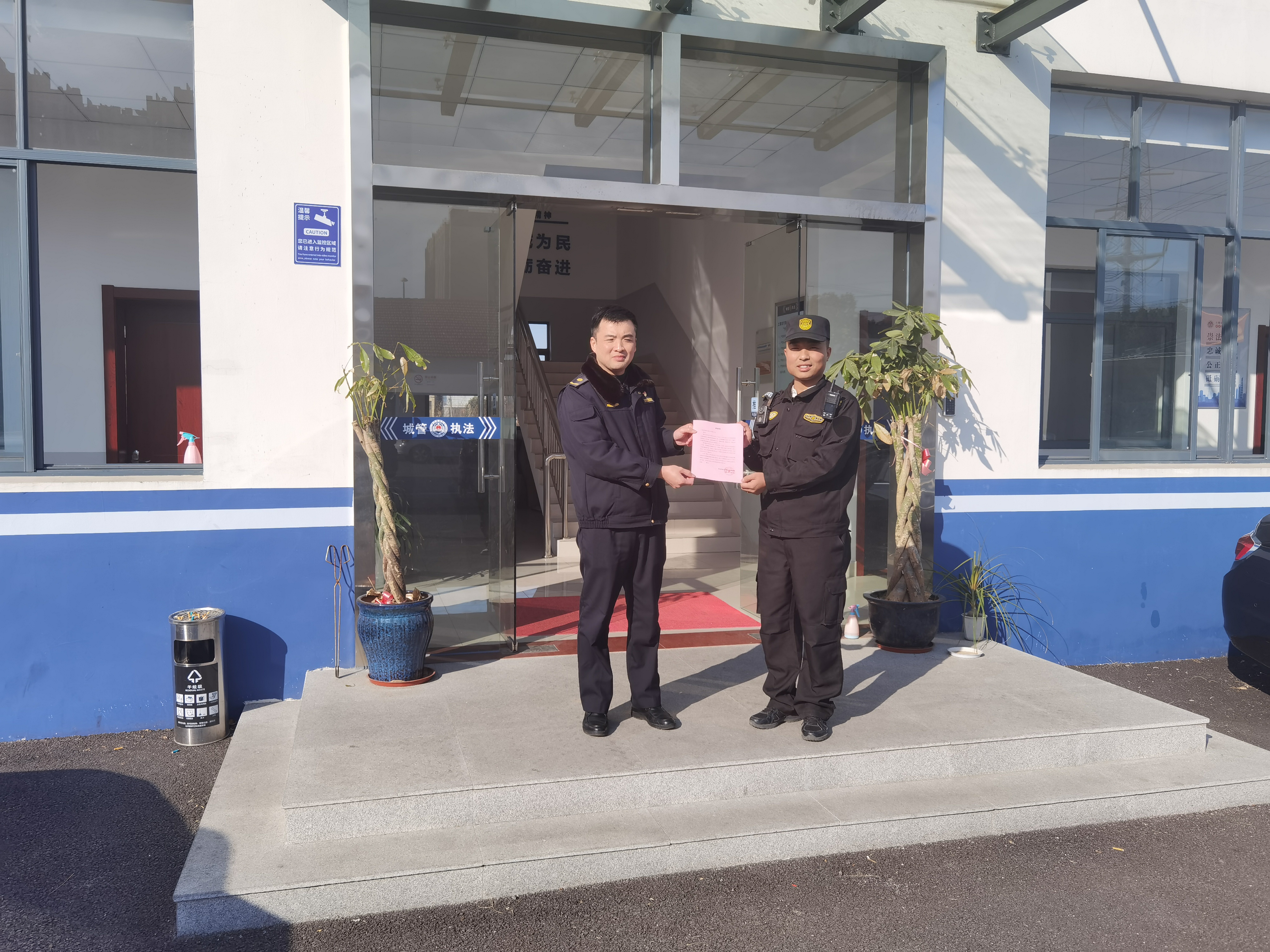 12月16日,宗保公司駐金山衛市容項目收到金山衛鎮綜合行政執法隊的表?yè)P信,信中對宗保隊員賈鐵雕兢兢業(yè)業(yè)的工作表現提出特別表?yè)P。