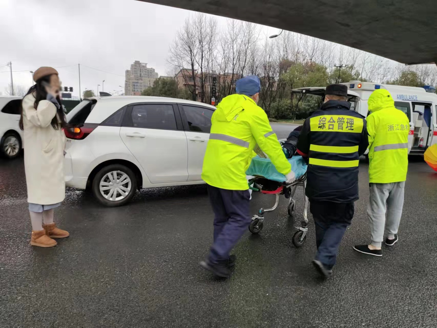 1月27日,浙江民泰駐閑林城管項目隊員及時(shí)救助車(chē)禍受傷女子。