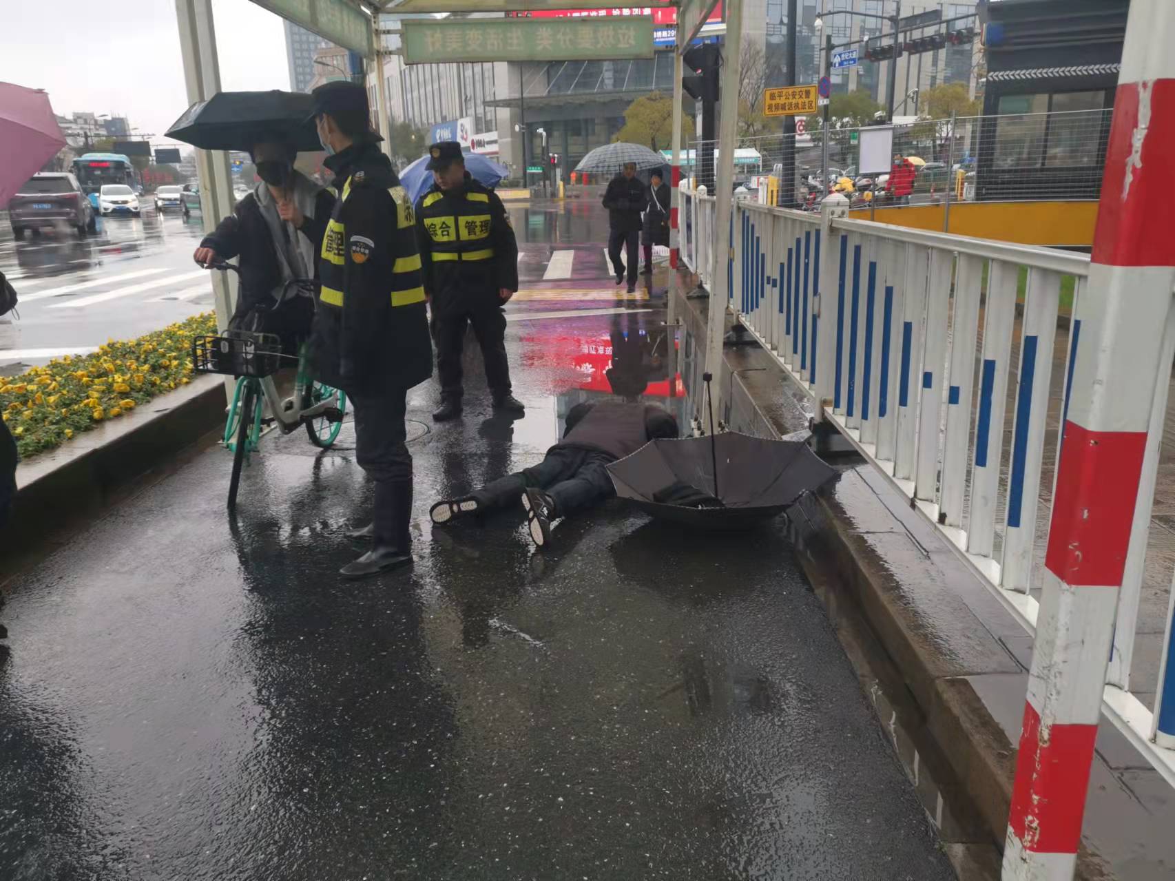 當日中午12:25,張帥帥、李佺在地鐵9號線(xiàn)臨平站A出口附近巡邏時(shí),發(fā)現一位老人因路滑摔倒在地,一時(shí)無(wú)法動(dòng)彈。兩人見(jiàn)此情況趕緊上前詢(xún)問(wèn),老人表示自己剛才走路時(shí)不小心摔倒了,腿部很疼、暫時(shí)無(wú)法起身。情況緊急,經(jīng)老人同意后,及時(shí)趕到現場(chǎng)的班組長(cháng)司曉偉撥打了120急救電話(huà)。