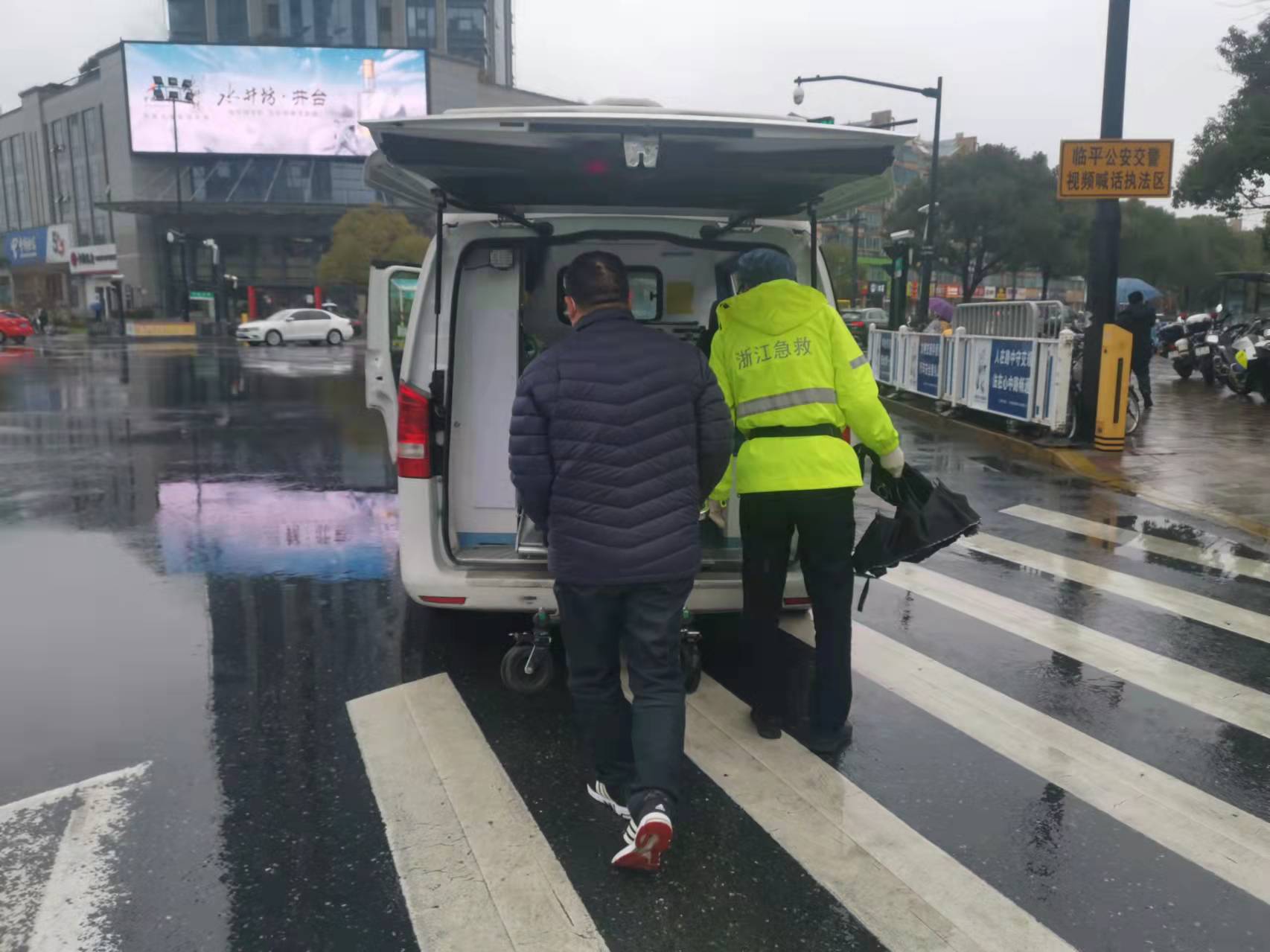 在等待救護車(chē)期間,細心的隊員一直守護在老人身邊,及時(shí)疏散周邊的行人和車(chē)輛,防止發(fā)生二次傷害。很快,救護車(chē)趕到現場(chǎng),三人又協(xié)助醫護人員將老人抬上救護車(chē),之后,隊員回到工作崗位,繼續開(kāi)展巡邏工作。