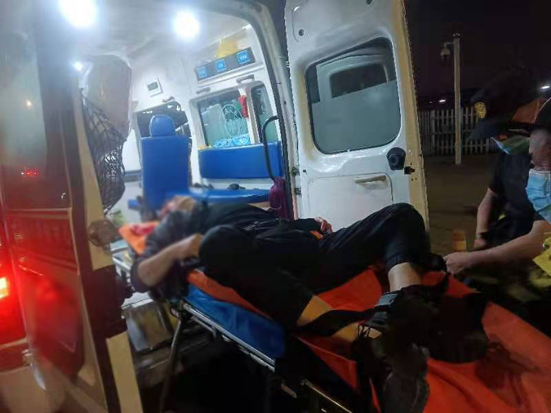 陰雨天氣,氣溫較低。在等待救護車(chē)時(shí),為防止受傷男子感冒,細心的鄭之元脫下工作服,披在他身上。很快,120救護車(chē)到達現場(chǎng),兩人又幫助急救人員將傷者抬上車(chē),送往醫院救治。