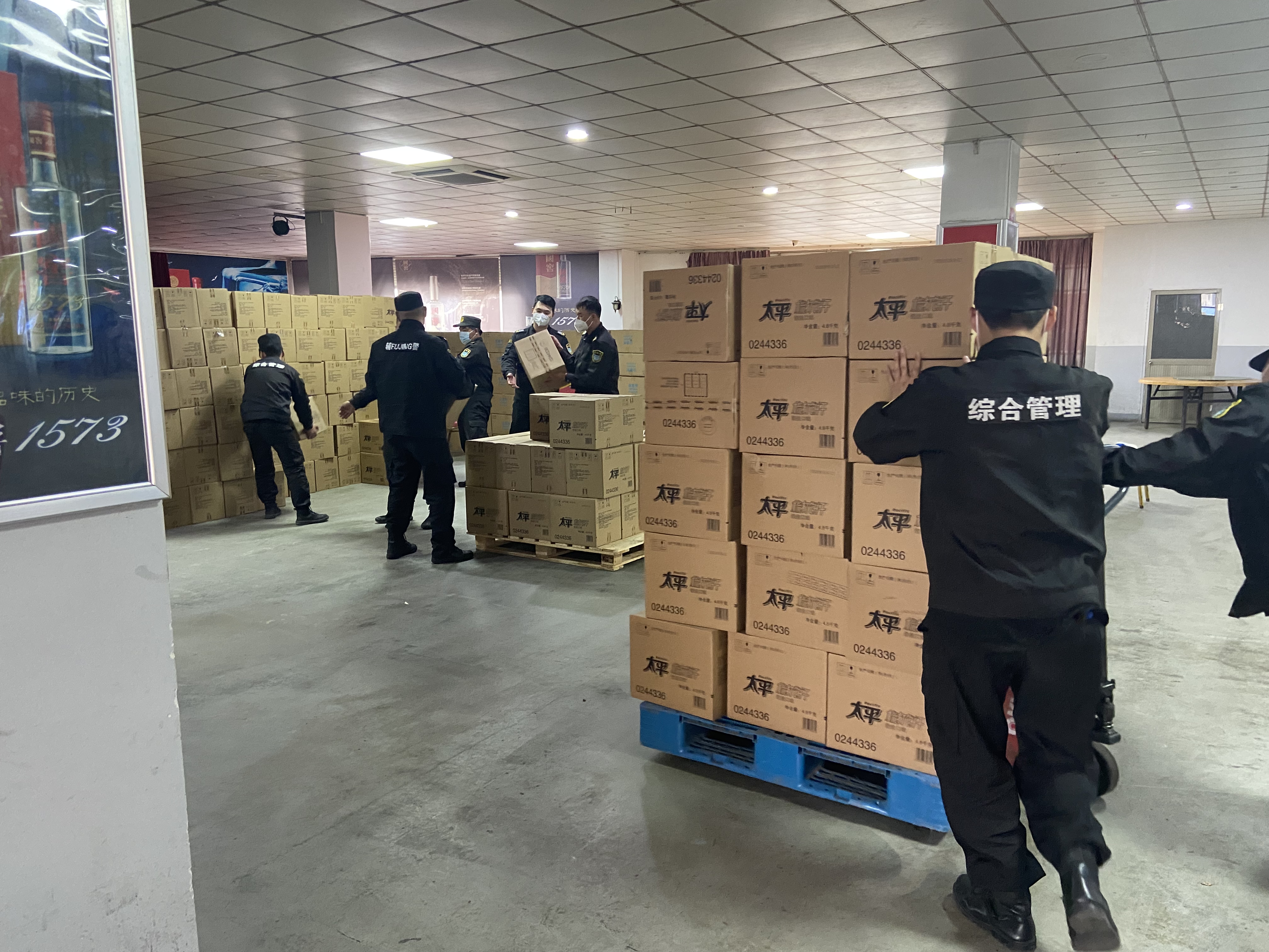 卯時(shí),員工們齊心協(xié)力協(xié)助甲方單位搬運防疫物資。他們的辛苦,傳遞著(zhù)他們的溫度。
