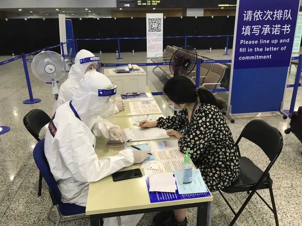 公司駐機場(chǎng)項目員工正在登記入境人員信息。