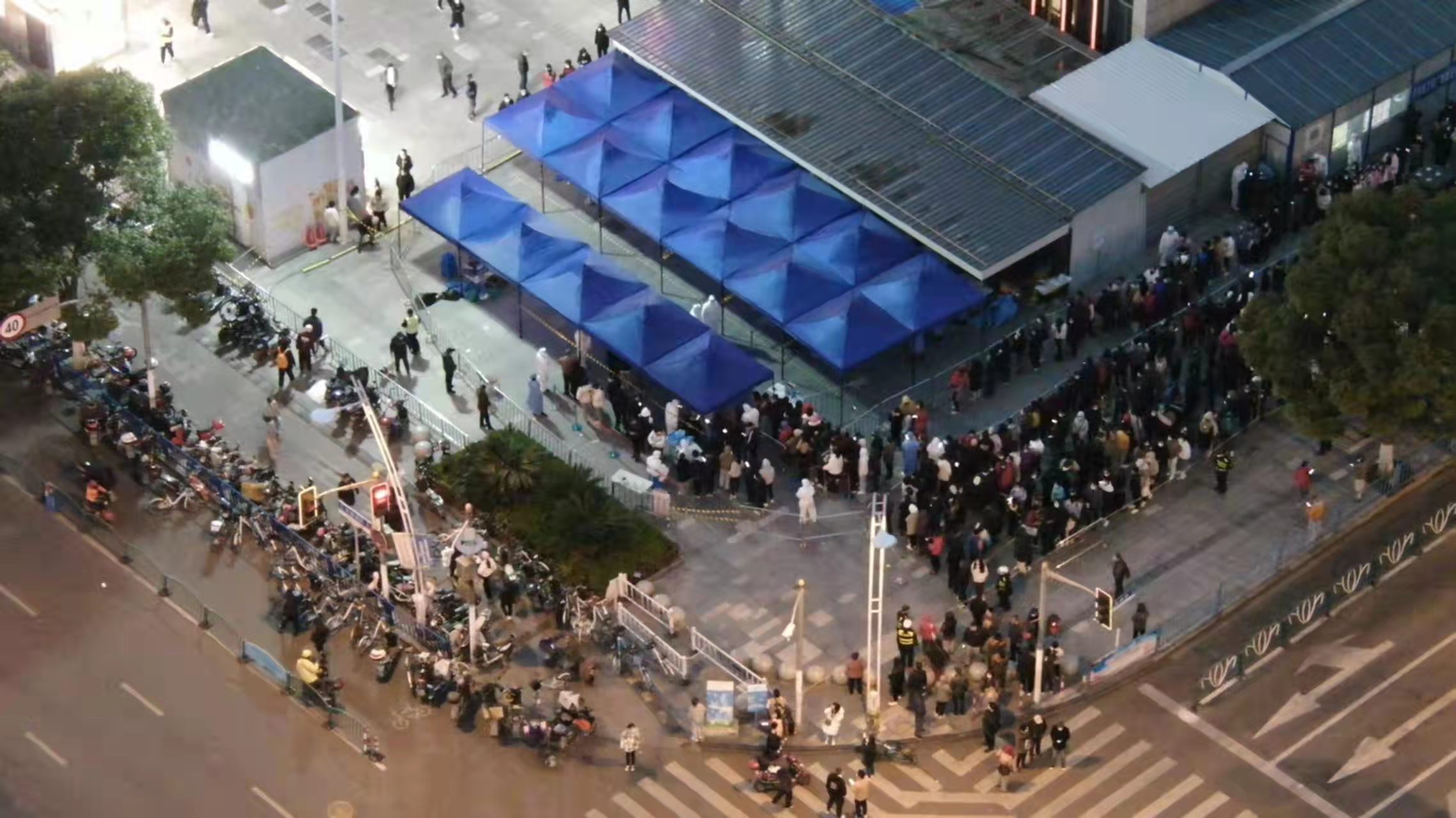 申時(shí),公司啟用無(wú)人機助力疫情防控,對大型核酸檢測現場(chǎng)進(jìn)行航拍,實(shí)時(shí)將現場(chǎng)畫(huà)面傳輸至應急管理中心,為遠程指揮提供數據和情景支撐。通過(guò)無(wú)人機搭載的喊話(huà)器,勸導小區居民積極參加核酸檢測,并提示大家服從現場(chǎng)安排,有序排隊,戴好口罩,保持2米安全距離。