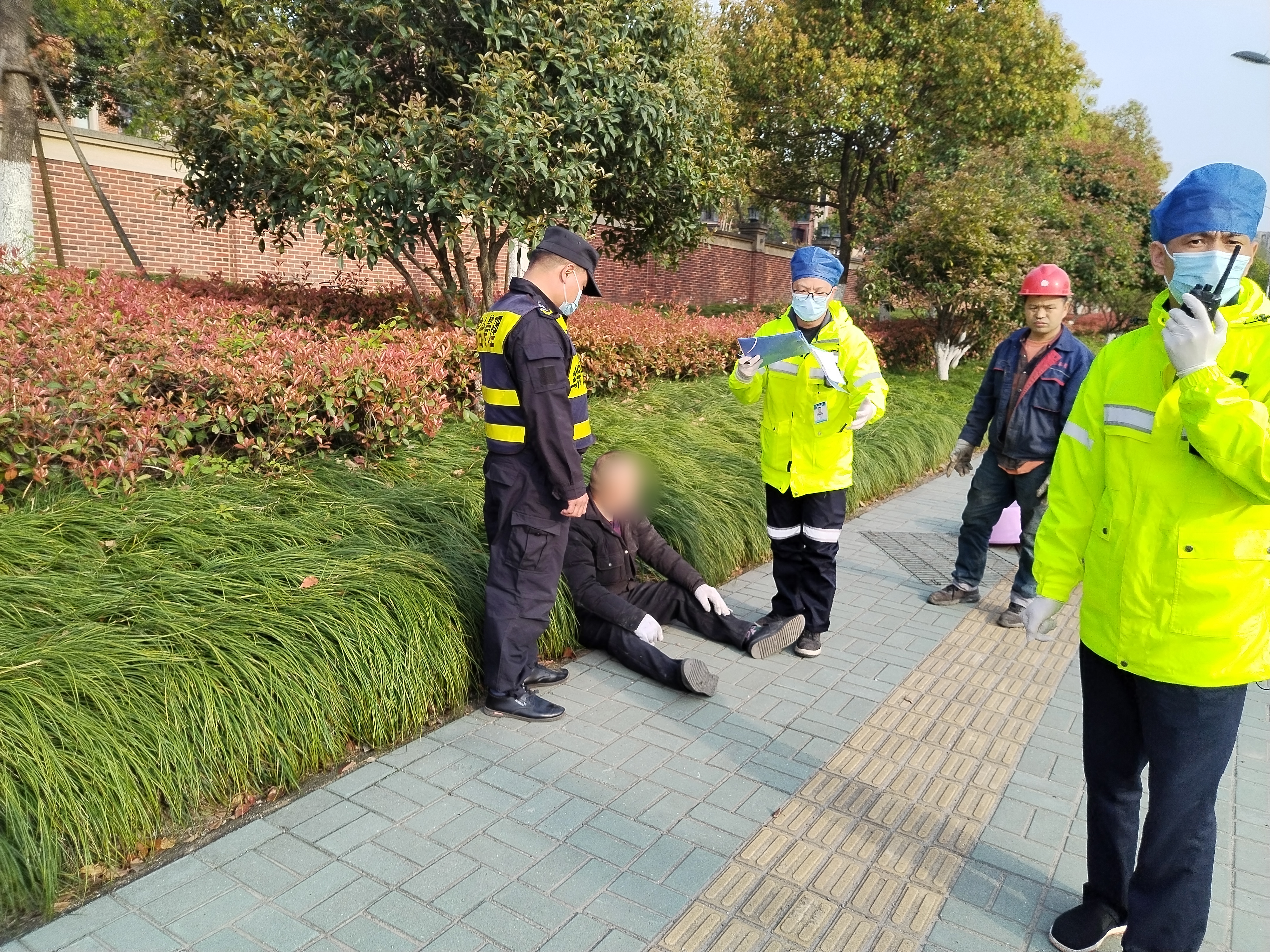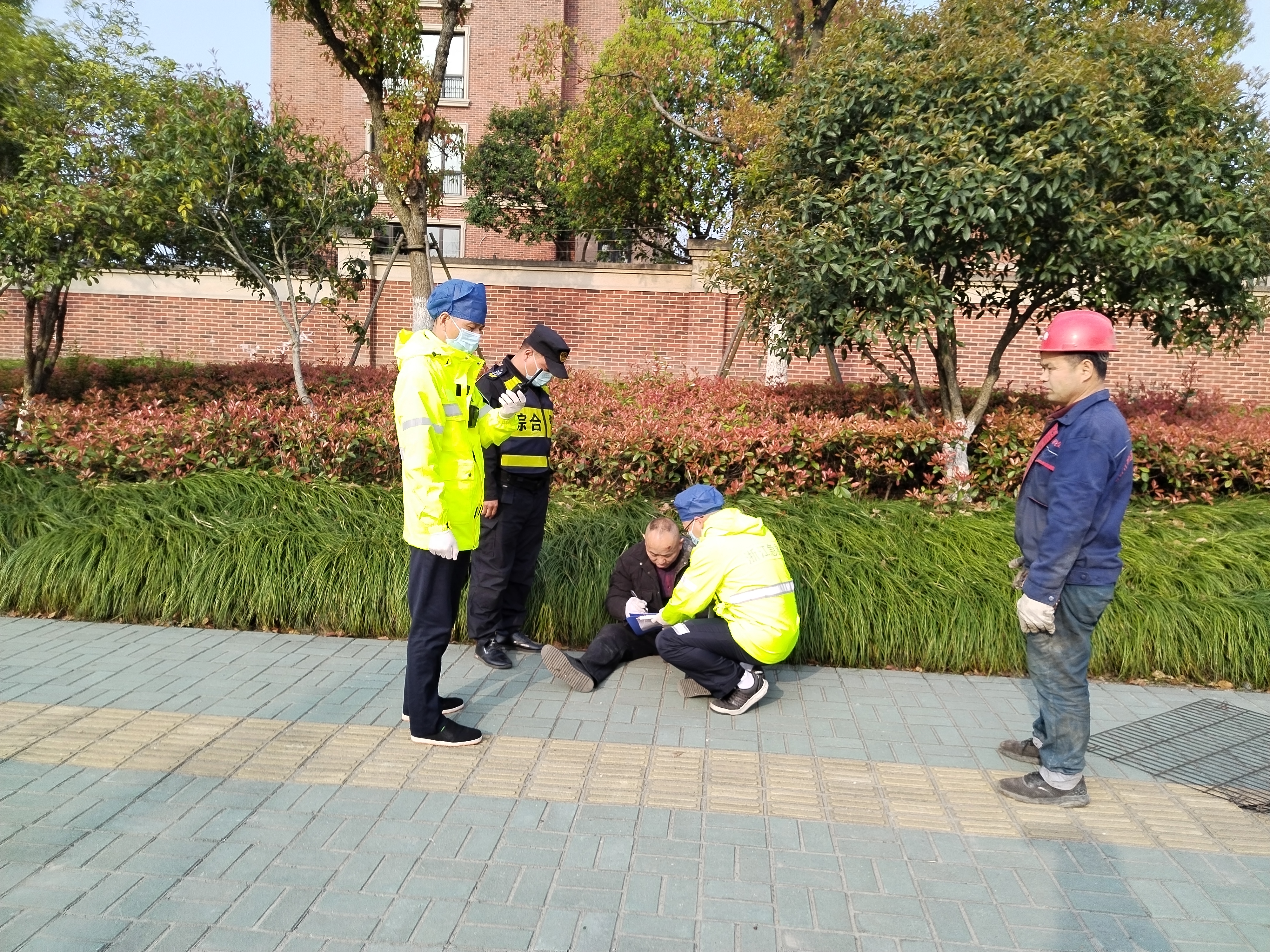 4月6日,浙江民泰駐塘棲市容項目隊員陳國清熱心救助一名因交通事故受傷人員。
