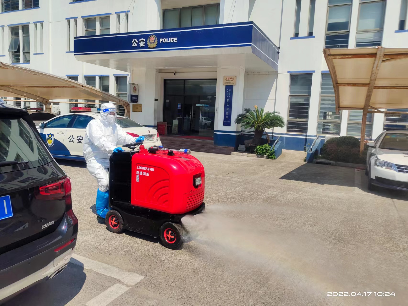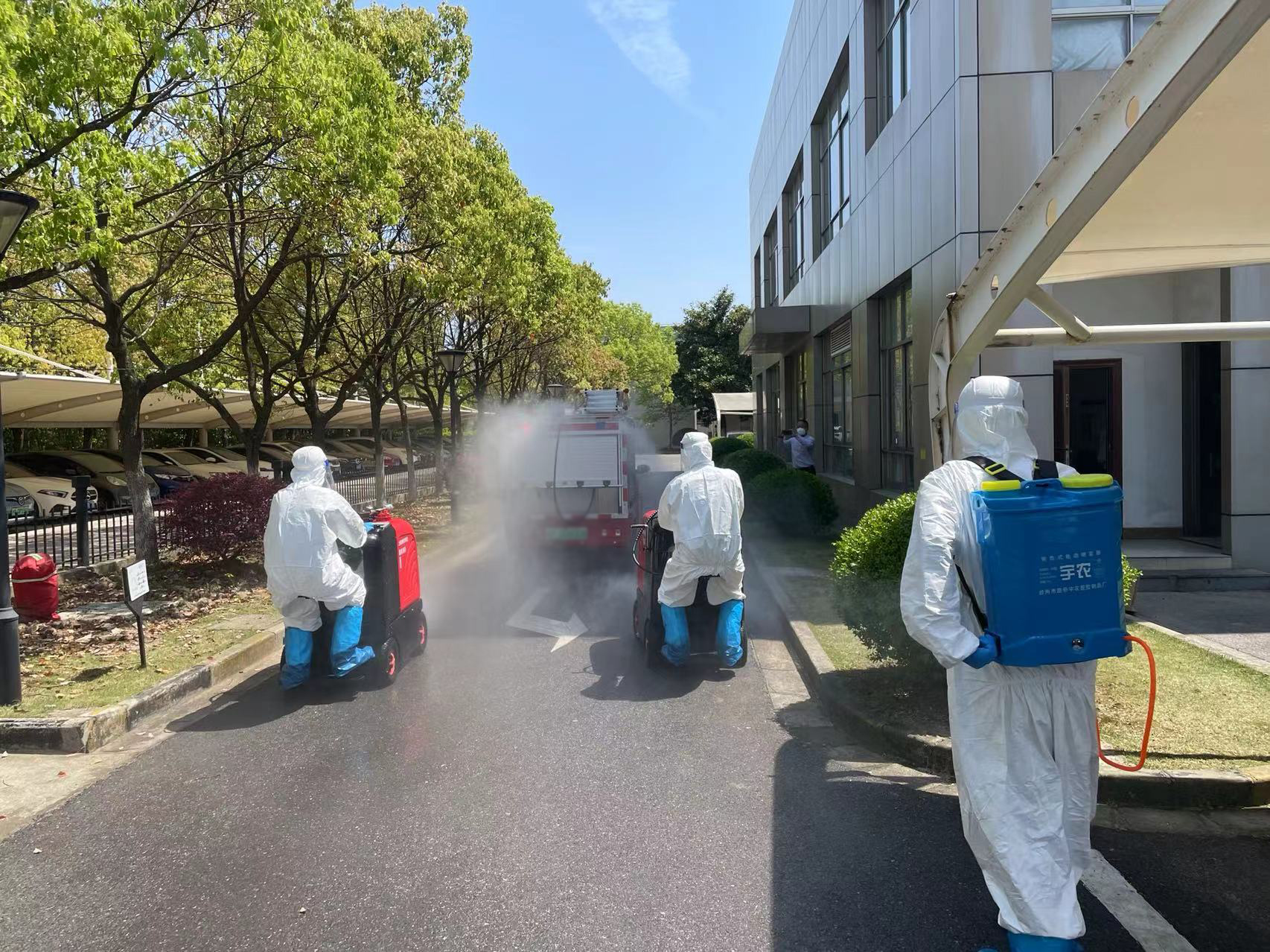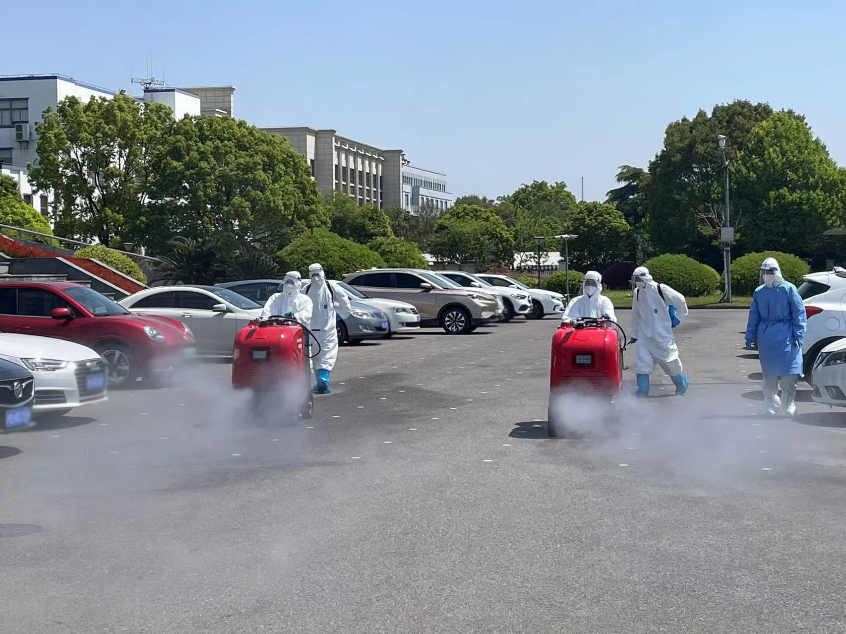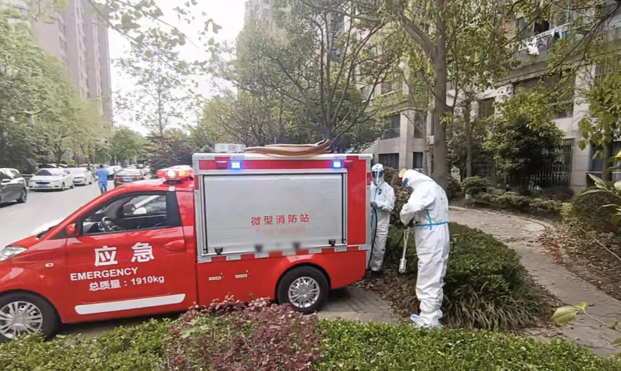 4月17日,根據航頭鎮疫情防控部門(mén)的部署和安排,公司選派8名消殺人員,身穿防護服,佩戴防護面罩,攜帶4臺霧化消毒設備,駕駛2輛微型消防車(chē)前往航頭鎮,協(xié)助鎮相關(guān)部門(mén)開(kāi)展環(huán)境集中消殺工作。