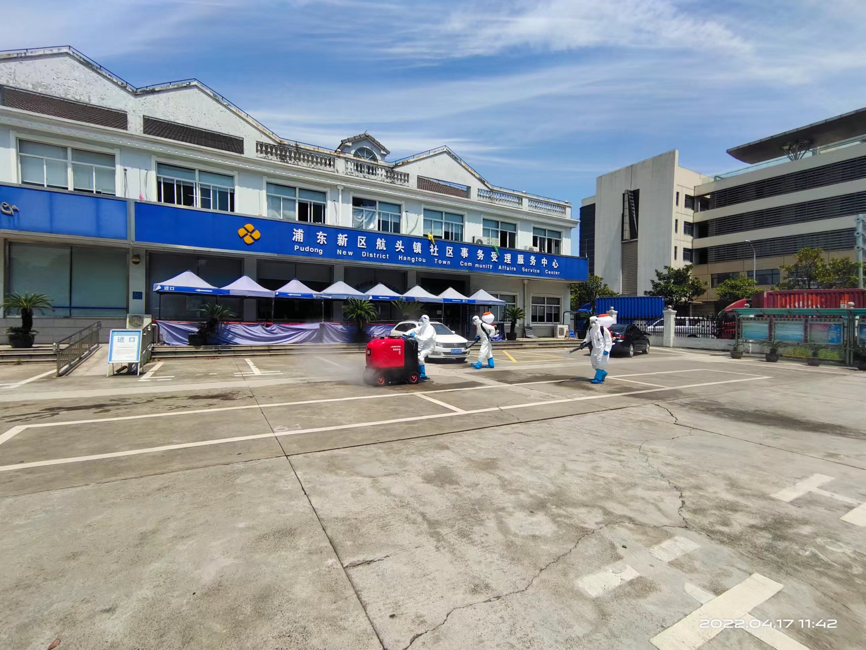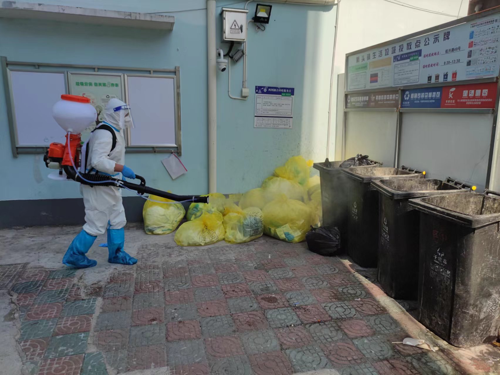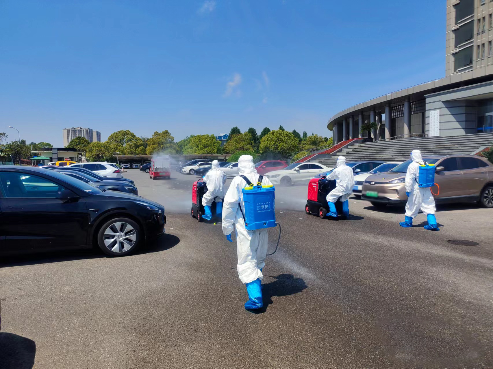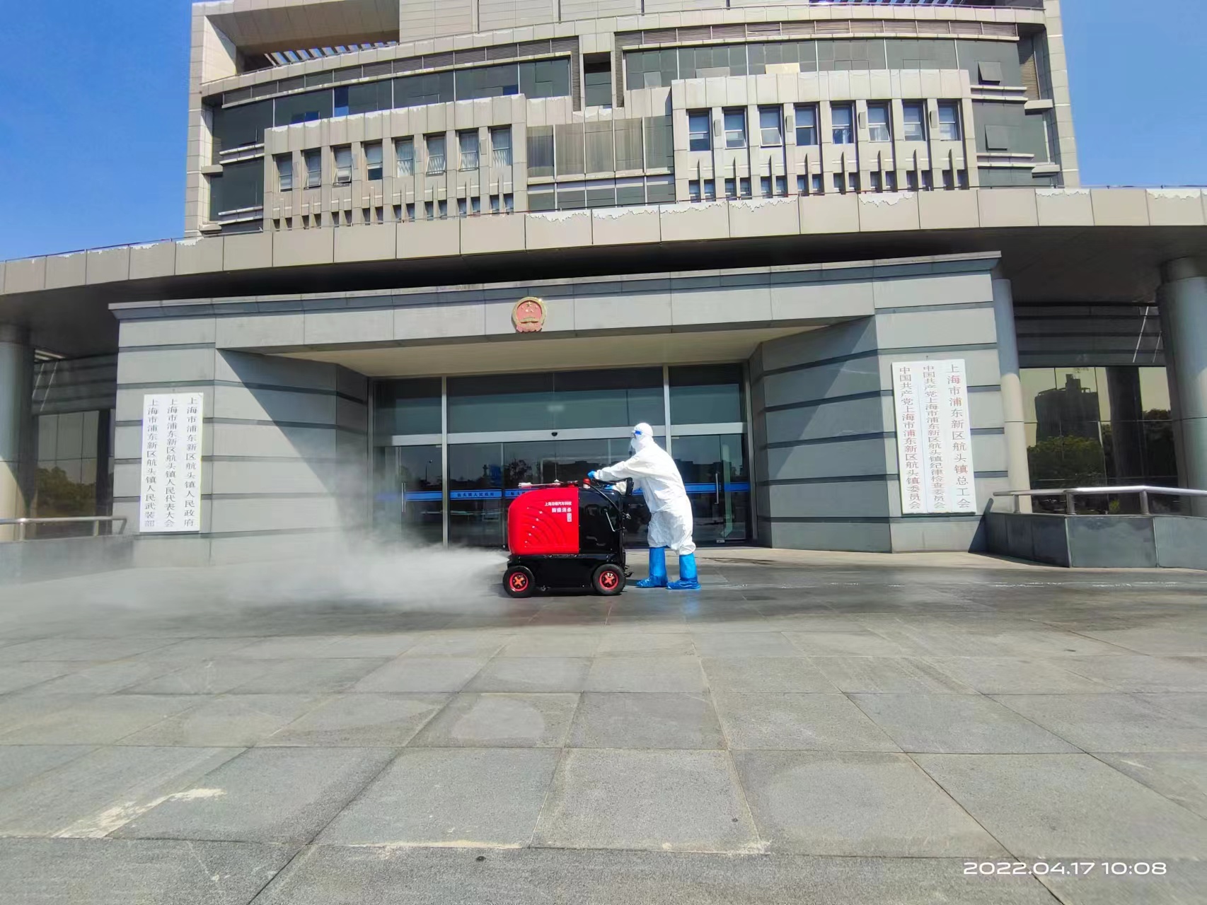 4月17日,根據航頭鎮疫情防控部門(mén)的部署和安排,公司選派8名消殺人員,身穿防護服,佩戴防護面罩,攜帶4臺霧化消毒設備,駕駛2輛微型消防車(chē)前往航頭鎮,協(xié)助鎮相關(guān)部門(mén)開(kāi)展環(huán)境集中消殺工作。