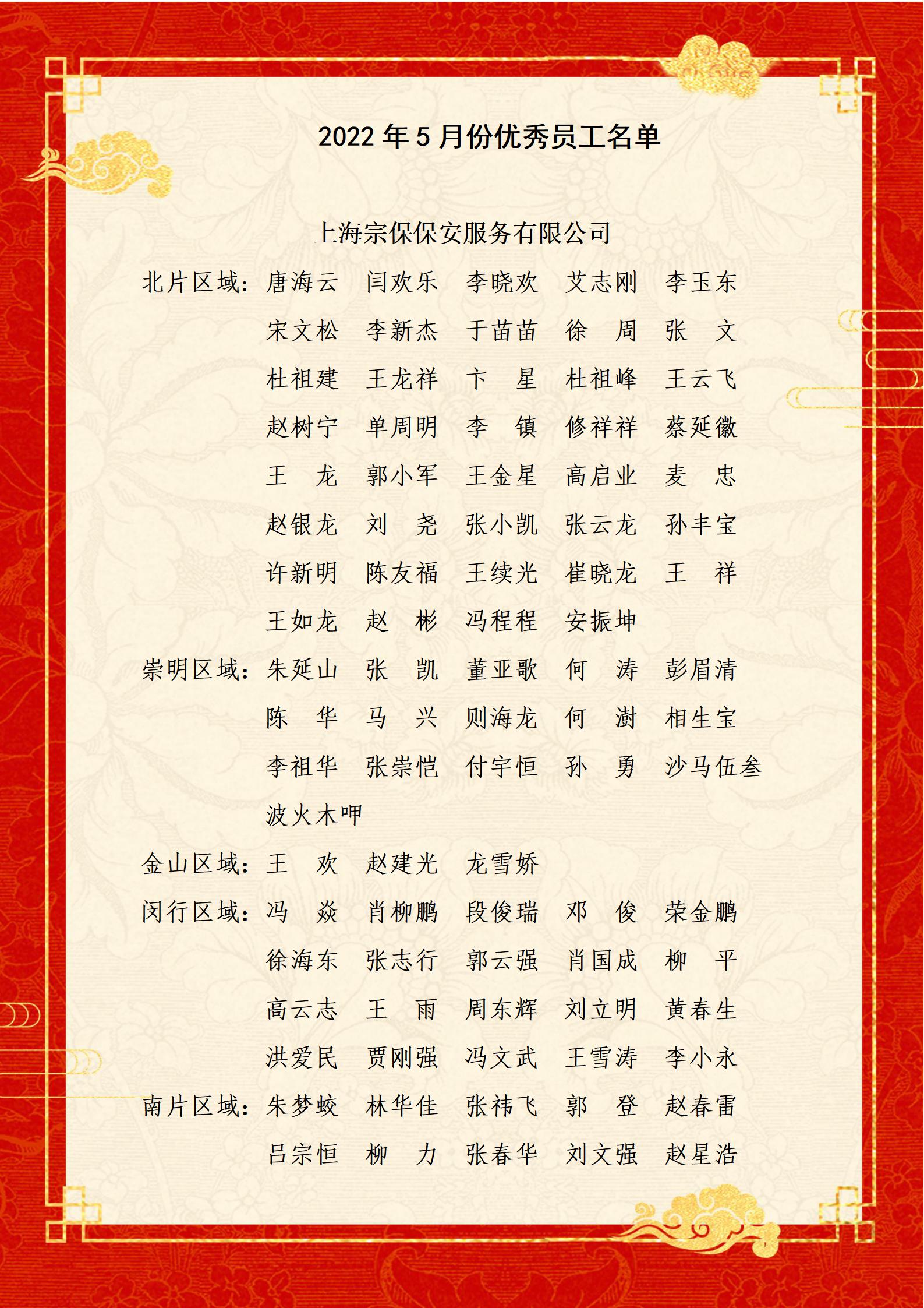 5月份,上海疫情防控全力拔點(diǎn)攻堅,公司廣大員工按照公司疫情防控的工作部署和要求,堅決執行疫情防控規定,嚴格落實(shí)疫情防控措施,不懼風(fēng)險、勇往直前,勠力同心、克艱奮戰,志愿協(xié)助有關(guān)部門(mén)運送保供物資,值守封控小區、村居、樓宇等場(chǎng)所,配合進(jìn)行街面人員通行查驗,開(kāi)展街面商鋪排查,為奮力奪取大上海疫情防控保衛戰的勝利做出了不懈努力。期間,涌現出了一批勇毅逆行、甘于奉獻的優(yōu)秀員工和先進(jìn)典型。