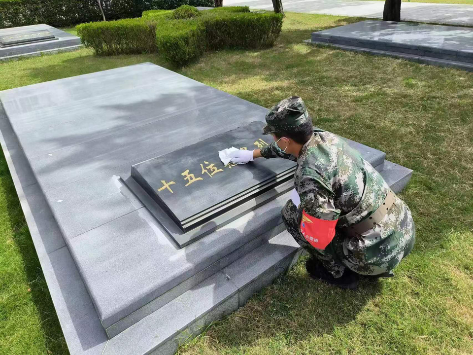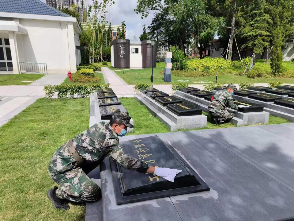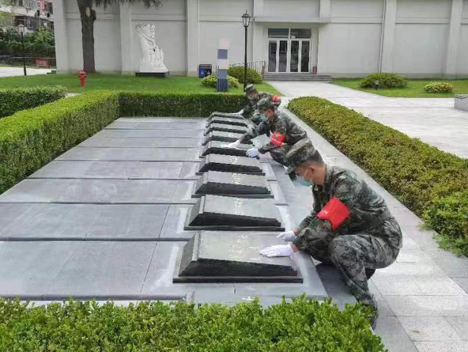 7月1日上午,上海烈士紀念設施守護崇敬志愿服務(wù)隊浦東區隊志愿者來(lái)到川沙、南匯烈士陵園,集合在紀念碑前,神情凝重,莊重肅穆,向紀念碑深深三鞠躬,深切表達對烈士英雄的無(wú)限緬懷。隨后,大家戴上手套,拿著(zhù)毛巾,懷著(zhù)無(wú)比崇敬的心情,來(lái)到一座座墓前,擦拭著(zhù)一塊塊墓碑,清理著(zhù)墓邊雜草;閱讀著(zhù)一句句碑文,瞻仰著(zhù)烈士事跡。他們守護著(zhù)烈士設施,祭奠著(zhù)烈士英靈,把緬懷英烈、崇尚英雄,轉化為自己的實(shí)際行動(dòng)。