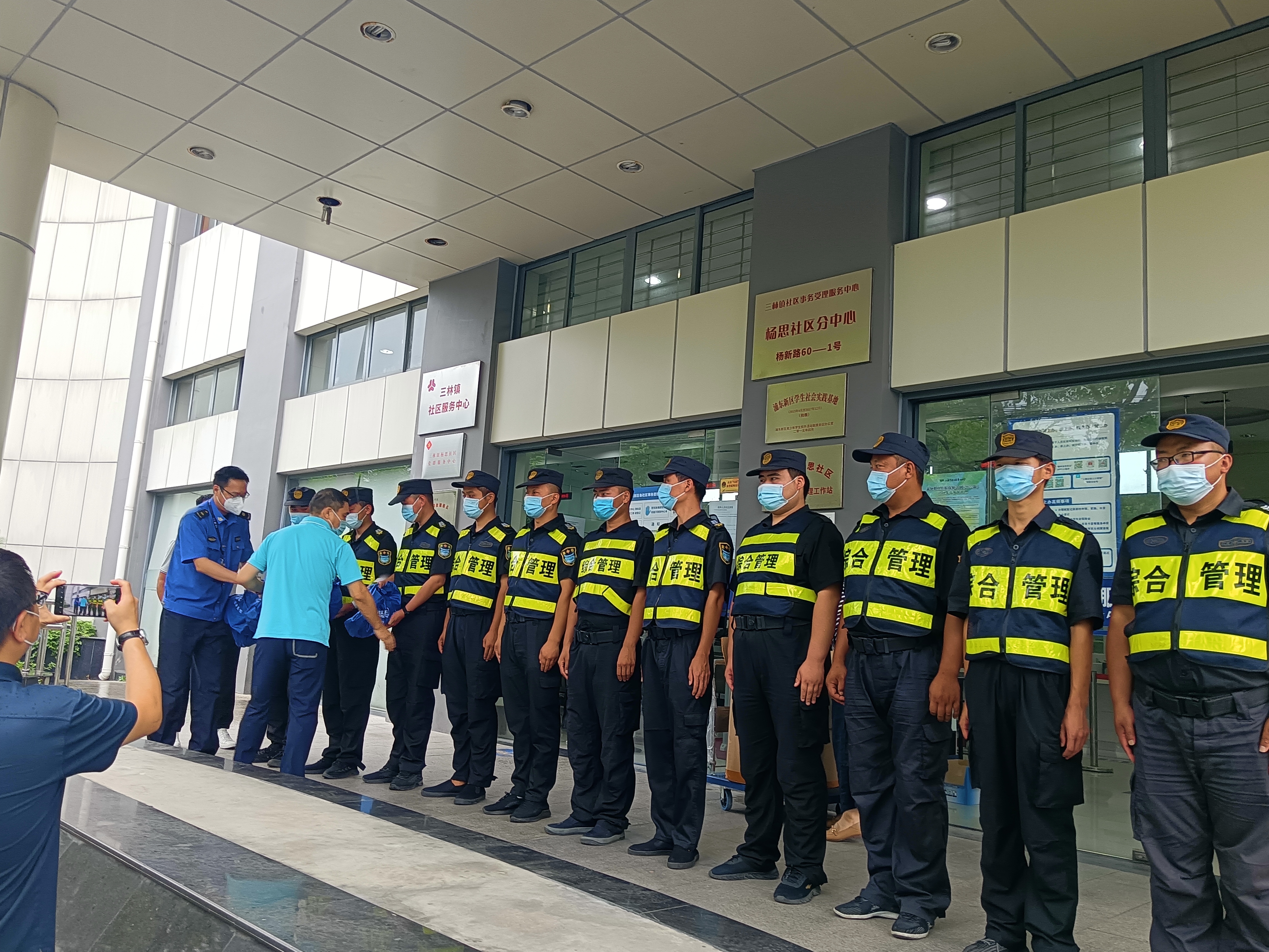 7月19日,浦東三林鎮楊思社區黨委副書(shū)記唐義軍來(lái)到楊新路60-1號看望慰問(wèn)高溫下奮戰在抗疫一線(xiàn)的宗保公司員工。