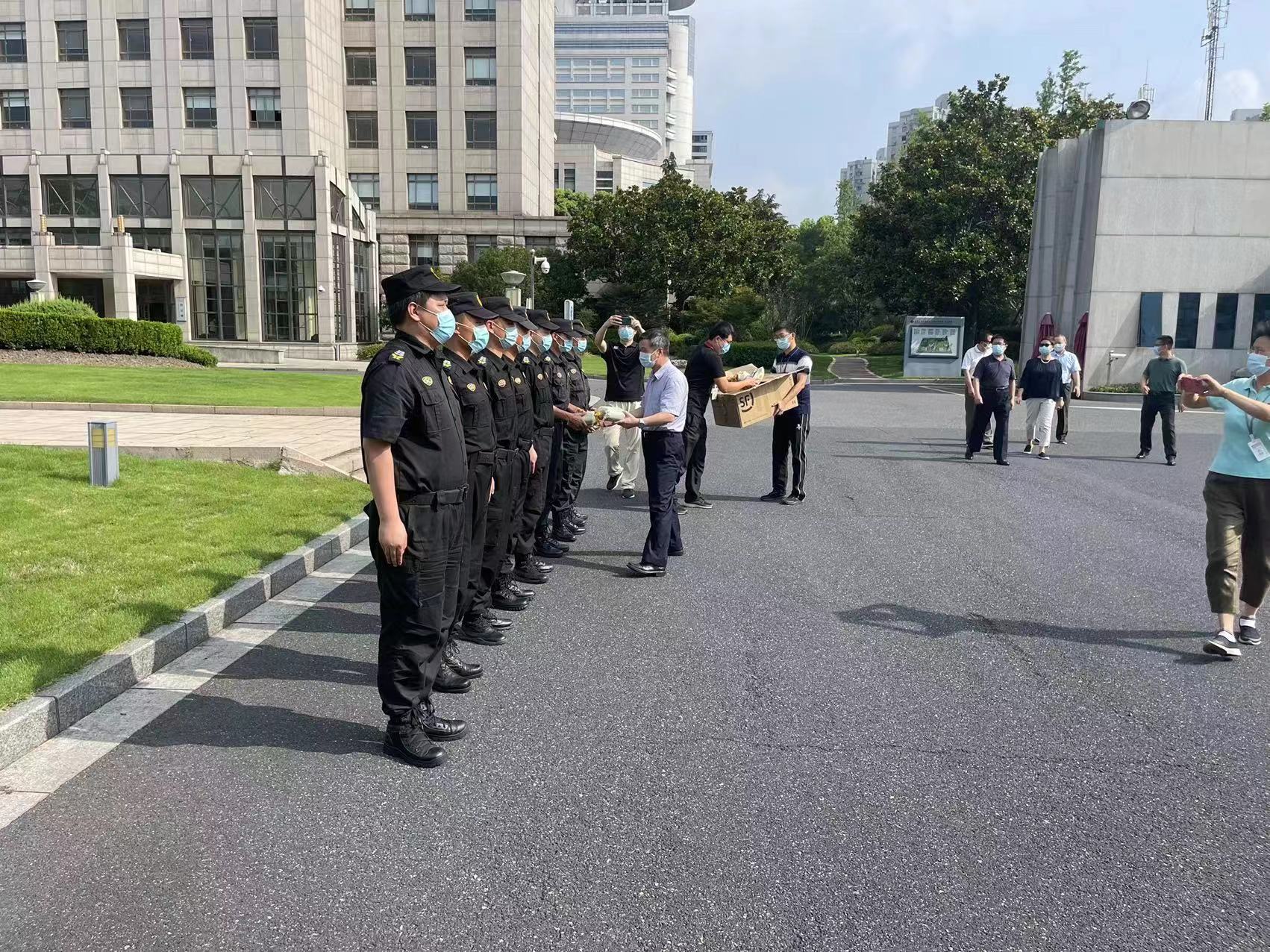 李渤副校長(cháng)一行來(lái)到宗保公司員工工作崗位進(jìn)行親切慰問(wèn),為他們送上洗發(fā)水等防暑降溫用品,表達市委黨校對安保人員的關(guān)心和問(wèn)候,感謝大家為維護黨校秩序所付出的辛勤勞動(dòng),叮囑大家做好疫情防護,安排好休息,照顧好身體。