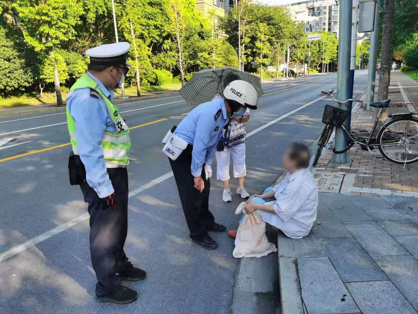 當日7:10,汪俊連在吳中柏樟附近值勤時(shí),發(fā)現一位老人摔倒在馬路上。老人用手撐著(zhù)地,自己想站起來(lái),但試了幾試都沒(méi)有成功。汪俊連見(jiàn)狀,趕緊跑上前將老人從地上扶起,攙坐到路邊。
