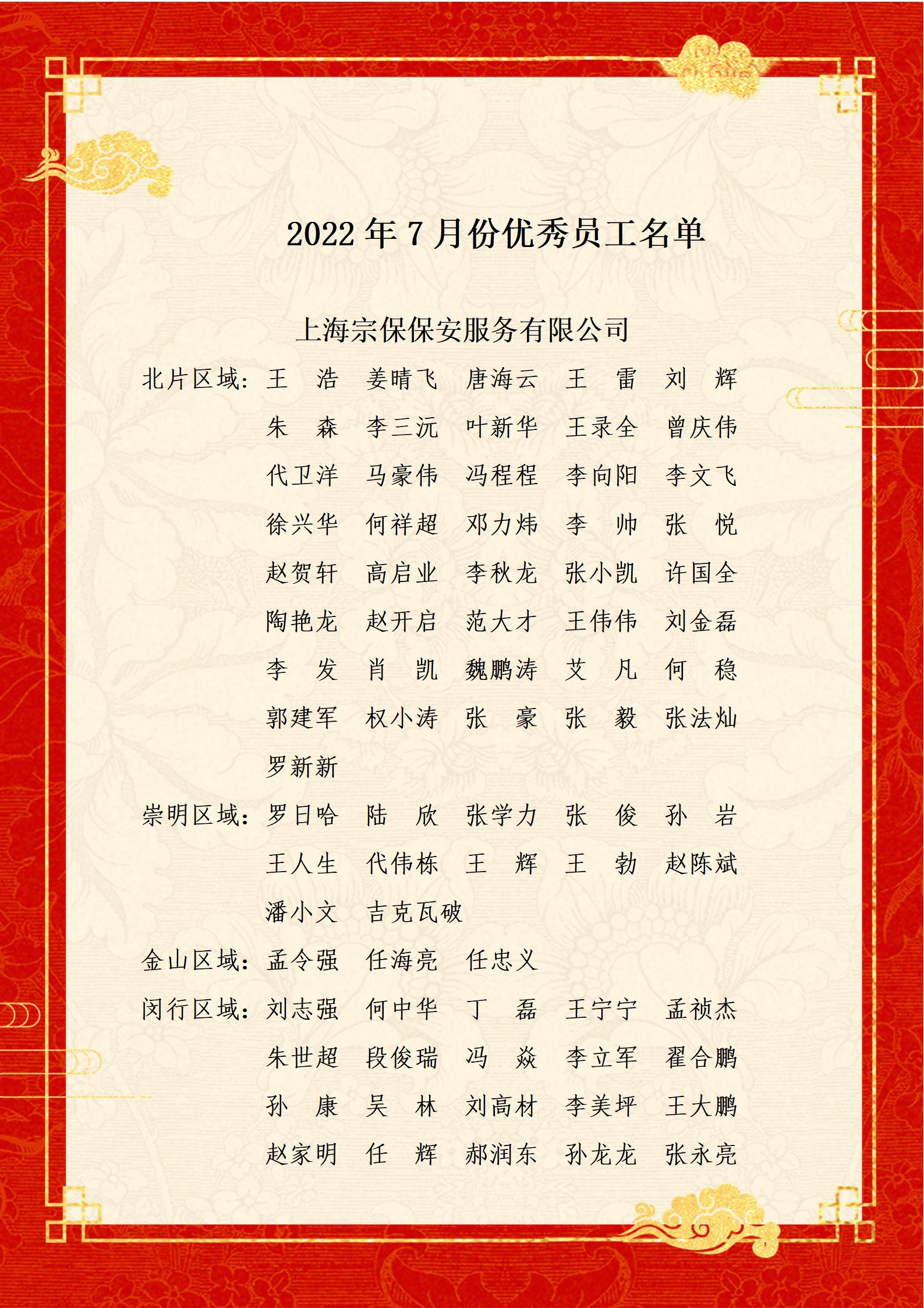7月份,公司廣大員工根據甲方的任務(wù)部署,按照公司的工作要求,不懼風(fēng)險、勇毅前行,頂著(zhù)高溫、冒著(zhù)酷暑,全力配合甲方持續做好疫情防控工作,協(xié)助完成相關(guān)高考中考考點(diǎn)秩序維護,助力開(kāi)展好城市管理、夏季治安值守巡邏等工作。期間,涌現出了一批盡心履責、崗位建功、拾金不昧、助人為樂(lè )的優(yōu)秀員工和先進(jìn)典型。
