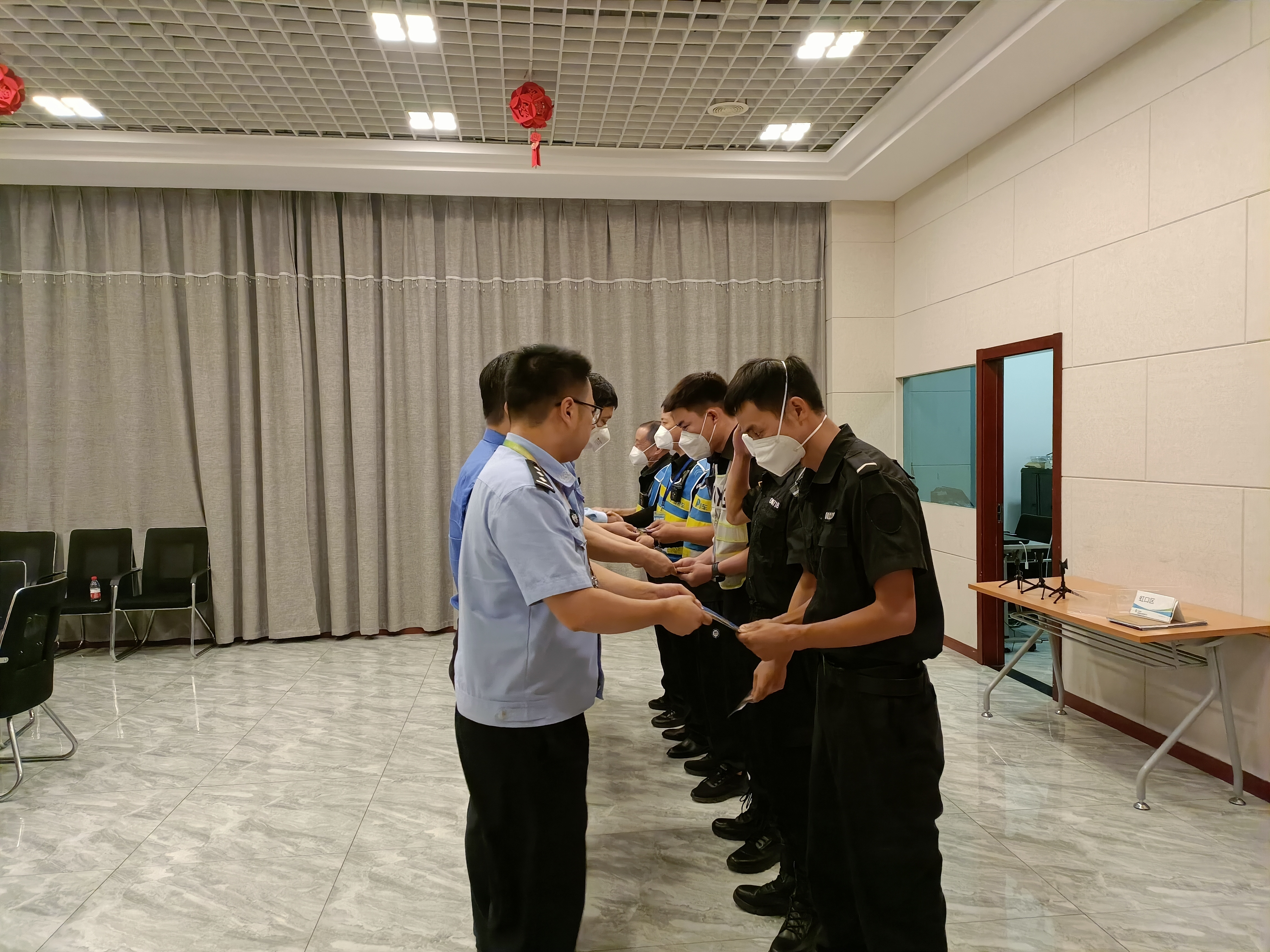 9月6日下午,浦東機場(chǎng)候機樓派出所會(huì )同浦東機場(chǎng)公司交通保障部副總經(jīng)理高忠、停車(chē)庫管理一科科長(cháng)李中元、特勤科科長(cháng)唐明、機場(chǎng)保安公司總經(jīng)理周軍、上海宗保保安服務(wù)有限公司副總經(jīng)理侯留勇、驛停車(chē)(北京)投資管理有限公司項目經(jīng)理傅磊、機場(chǎng)綜合監察支隊二大隊相關(guān)負責人一行上門(mén)為孫勇等人送獎,以表彰其在“三聯(lián)”工作中的突出表現。