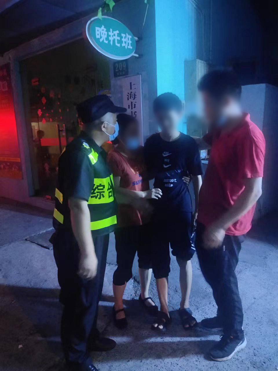 當天21:30,顧俊在東靖路一商鋪附近巡邏時(shí),看到一棟樓的二樓樓頂邊上有一個(gè)小男孩,樓下兩位居民正焦急地勸說(shuō):“你快點(diǎn)下來(lái)吧,下來(lái)吧,上面太危險了......”但小男孩好像沒(méi)有聽(tīng)到一樣,不管不顧地繼續沿著(zhù)樓頂邊沿移動(dòng)。