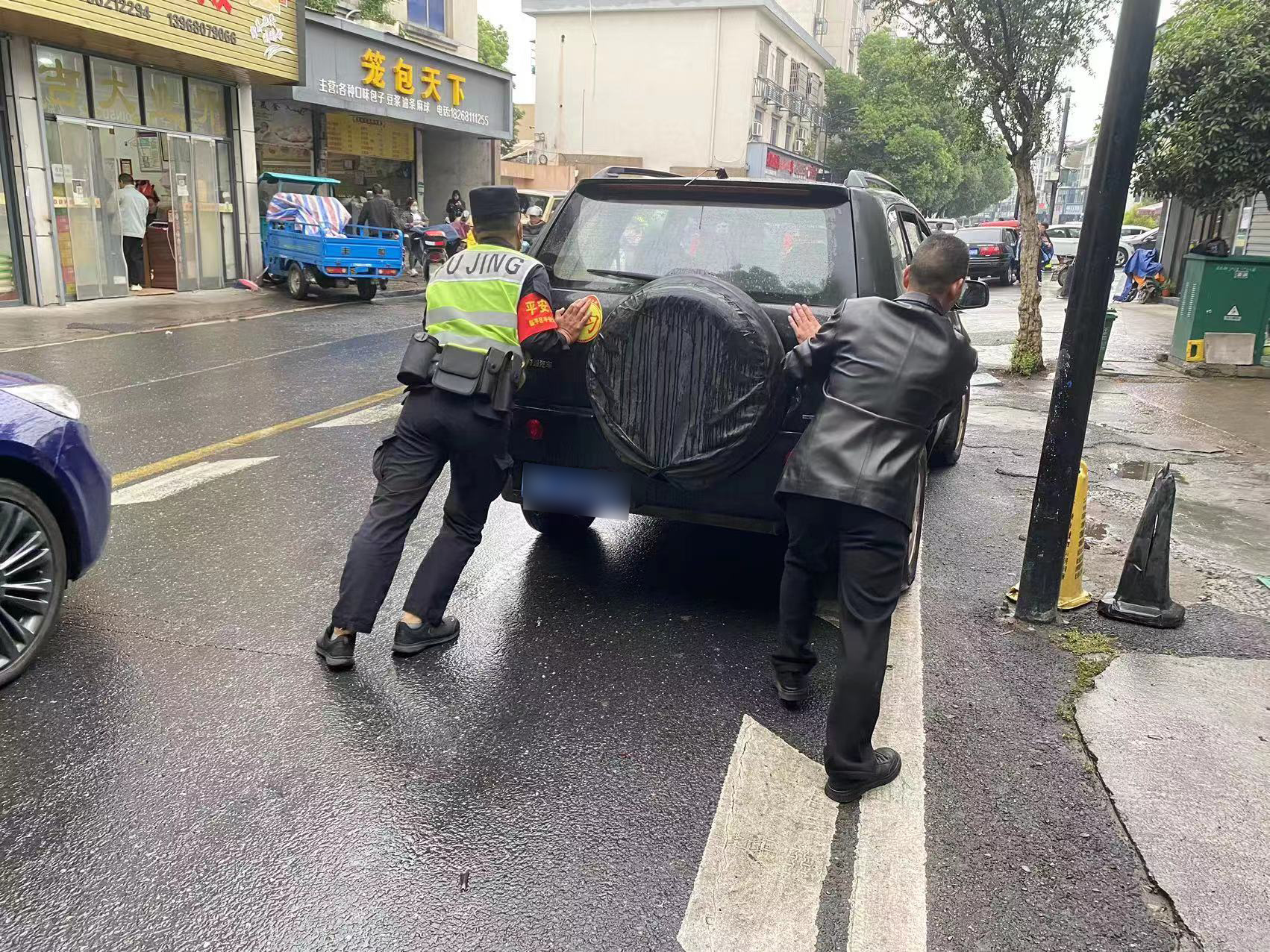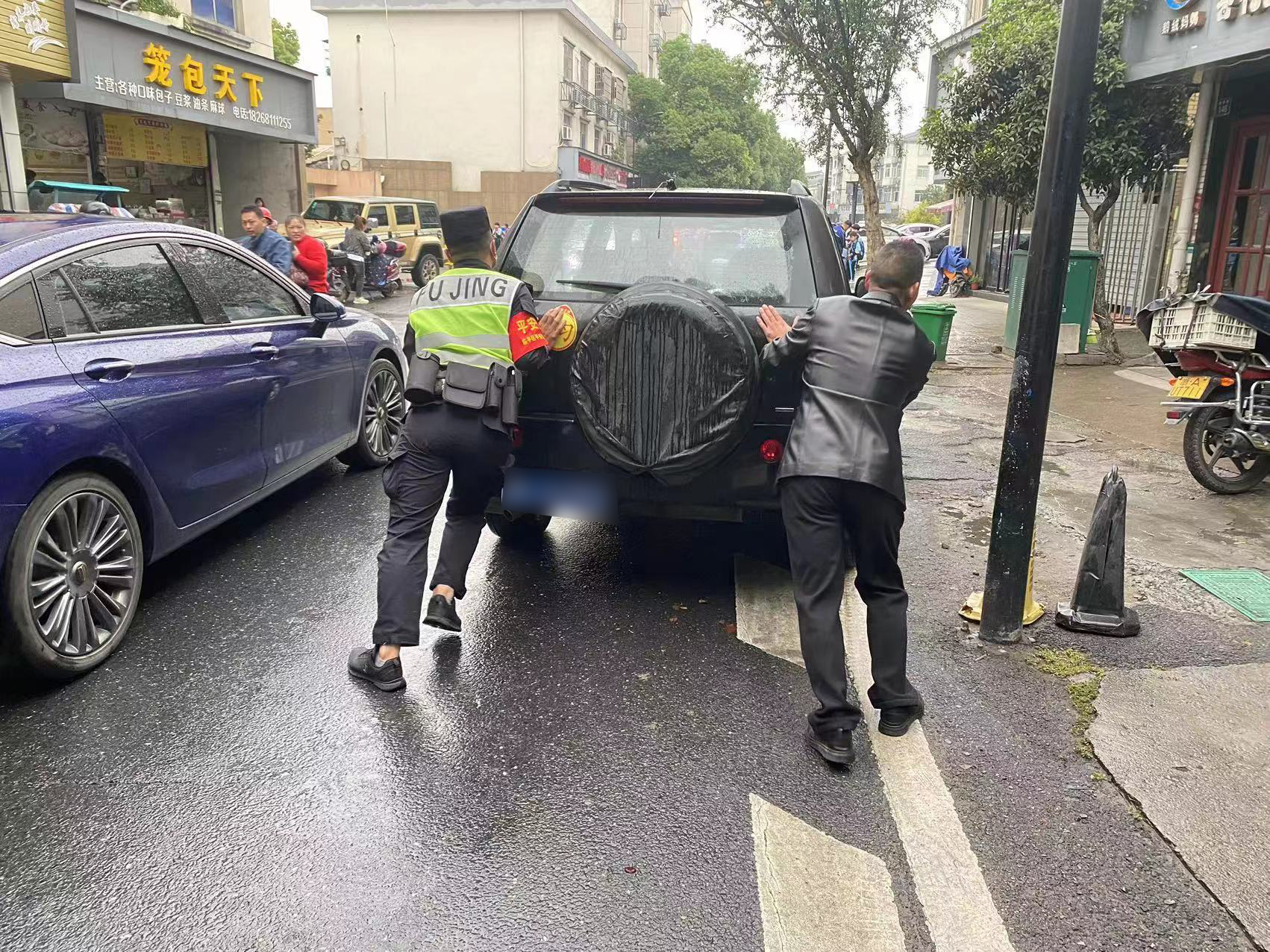 當日7:05分,王一飛在實(shí)驗小學(xué)門(mén)口值勤時(shí),看到一輛黑色轎車(chē)開(kāi)著(zhù)雙閃燈停在馬路中間。此時(shí)正值上學(xué)上班的高峰期,來(lái)來(lái)往往的車(chē)輛人員較多,極易造成交通堵塞,可能發(fā)生交通意外。