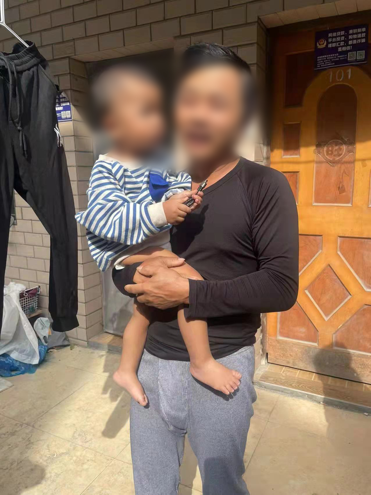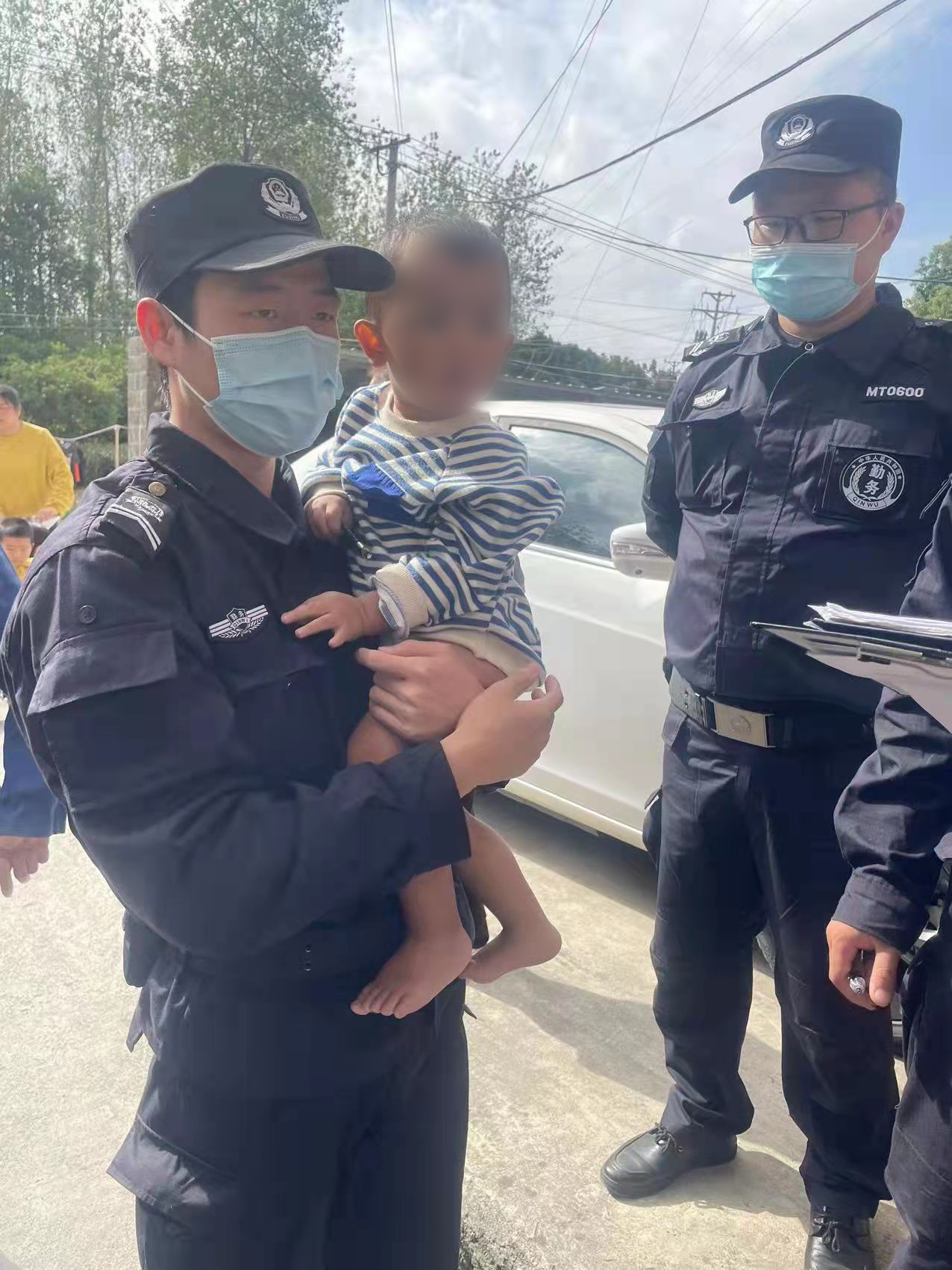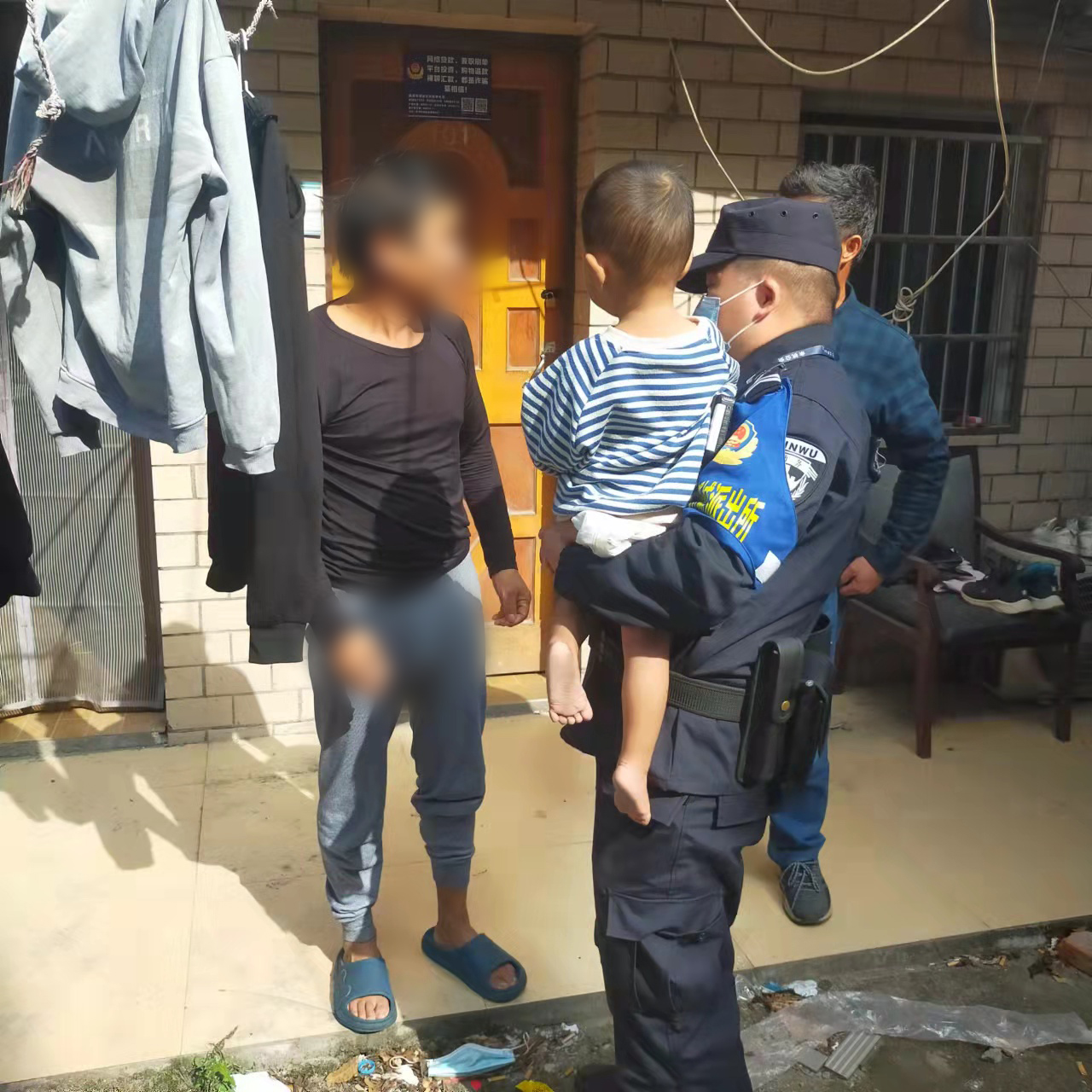 當天9:50,公司員工馮孝峰和張君豪按照余杭區公安分局良渚新城派出所指令,前往皖北飯店門(mén)口附近,幫助一名光著(zhù)腳、穿著(zhù)尿不濕的小男孩尋找家人。