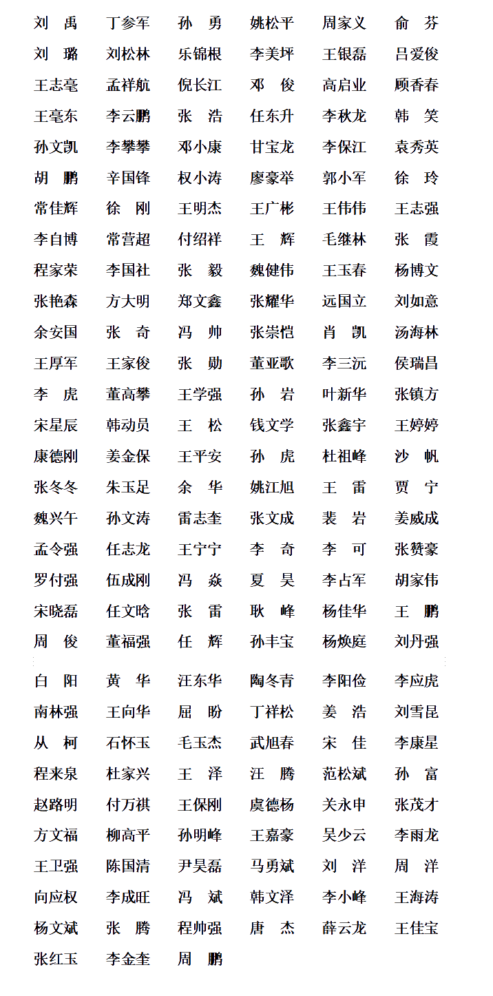 公司董事會(huì )在各項目、各區域推薦,廣泛征求意見(jiàn)的基礎上,評選出了21個(gè)“優(yōu)秀團隊”、183名“優(yōu)秀員工”、45名“優(yōu)秀退役軍人員工”、71名“優(yōu)秀骨干”和14名“宗保風(fēng)尚獎”,現對評選出的先進(jìn)集體和先進(jìn)個(gè)人予以通報表彰。
