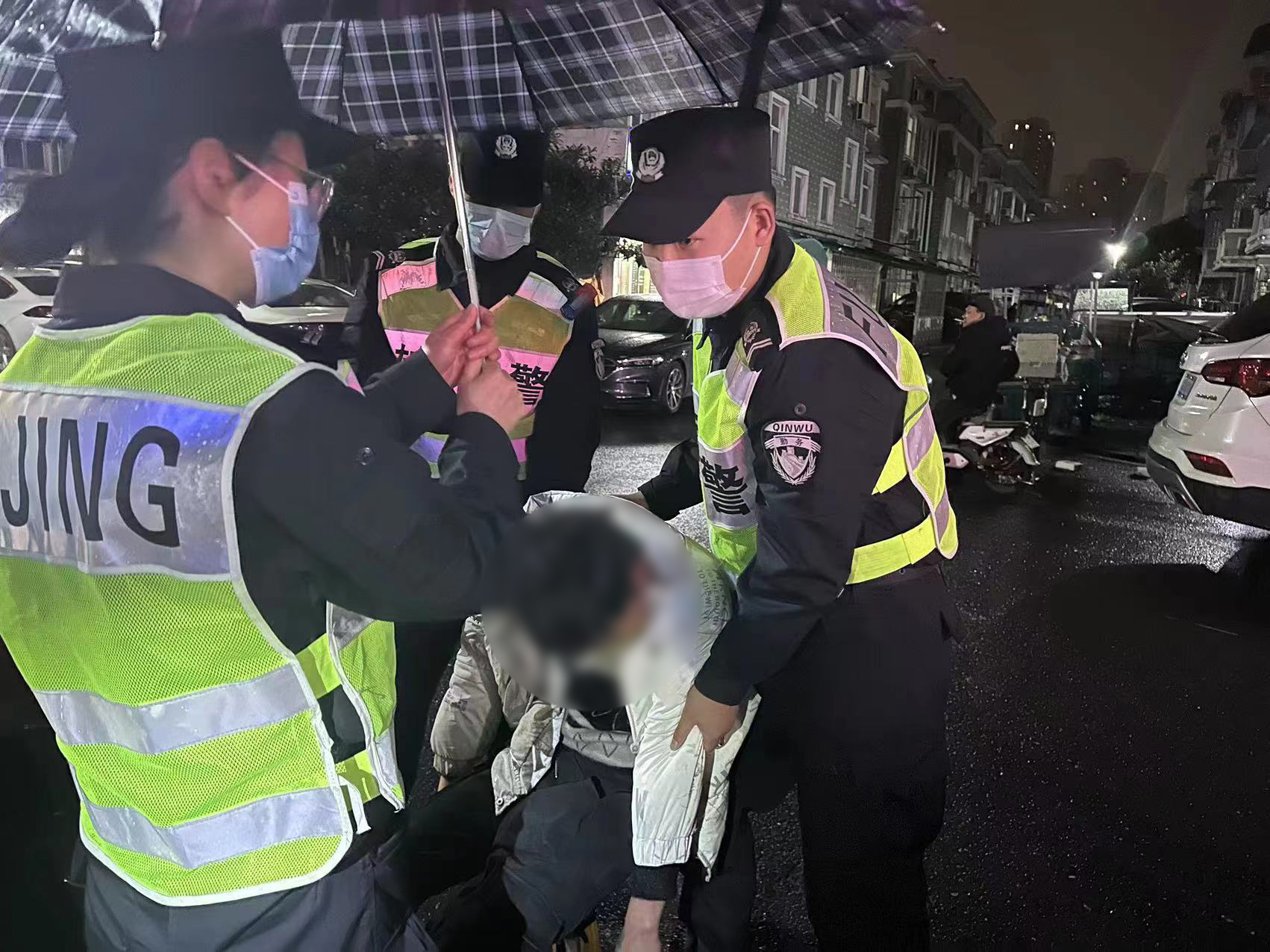男子身上散發(fā)著(zhù)濃濃的酒味,疑似醉酒。郭鵬輝嘗試著(zhù)想將男子叫醒,詢(xún)問(wèn)下他的情況,但該男子言語(yǔ)含糊不清,無(wú)法提供有效信息。孫天增和羅亞亞遂將其攙扶到安全地帶休息,并將情況報告了派出所值班室。