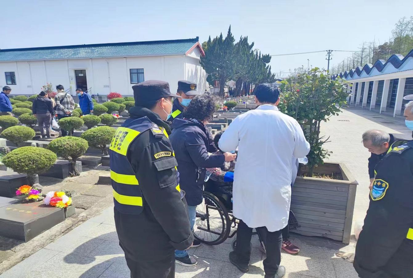 當天13:00,公司員工邵晨和梁士許在東溝靜園巡查時(shí),發(fā)現一位前來(lái)掃墓的老人暈倒在地,一旁的老人家屬一時(shí)不知無(wú)措。兩人見(jiàn)狀趕緊上前,并立即將情況報告了項目負責人郭崤。