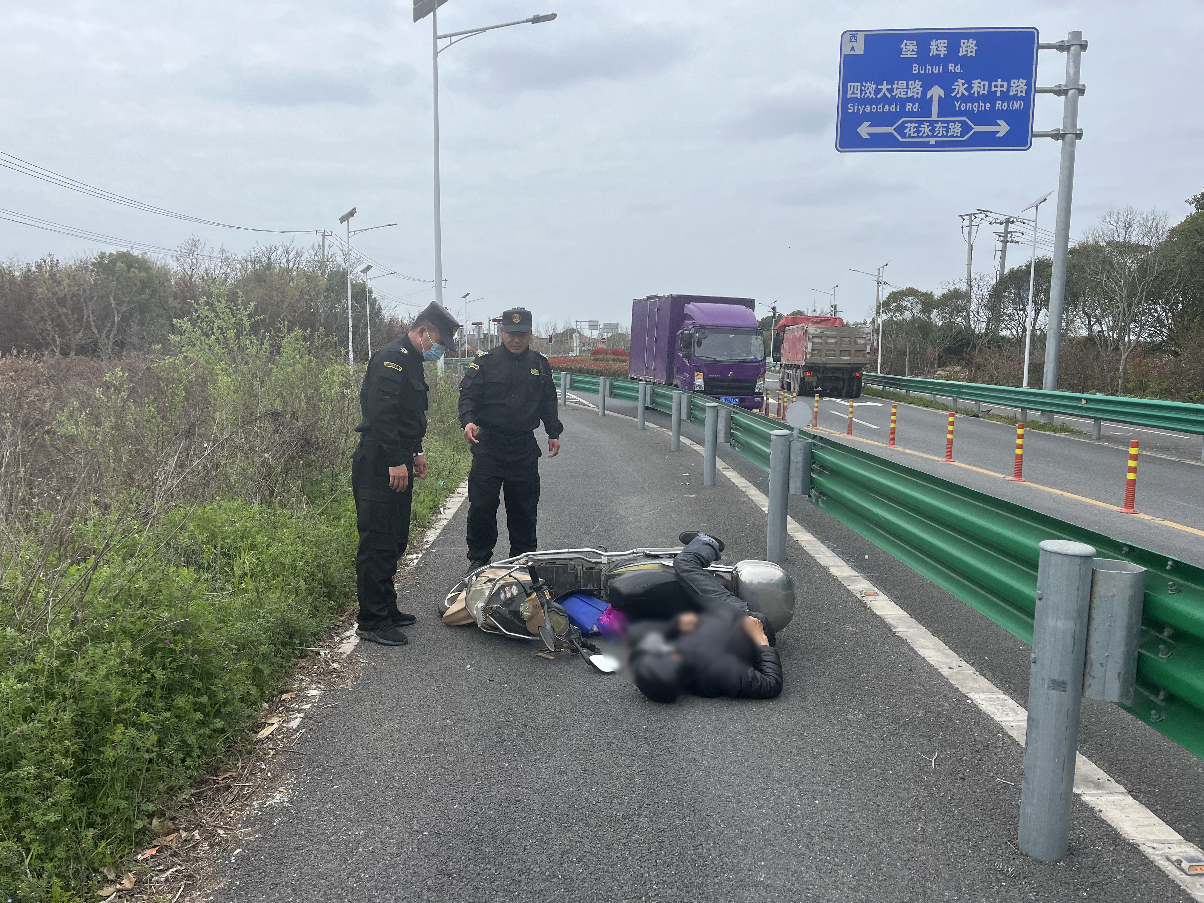 當日17:50,公司員工安畢富、鄭統和王明順在良渚街道疏港大道路段巡邏時(shí),發(fā)現一名騎電動(dòng)車(chē)的女子摔倒路邊,便急忙上前詢(xún)問(wèn)女子傷勢情況。